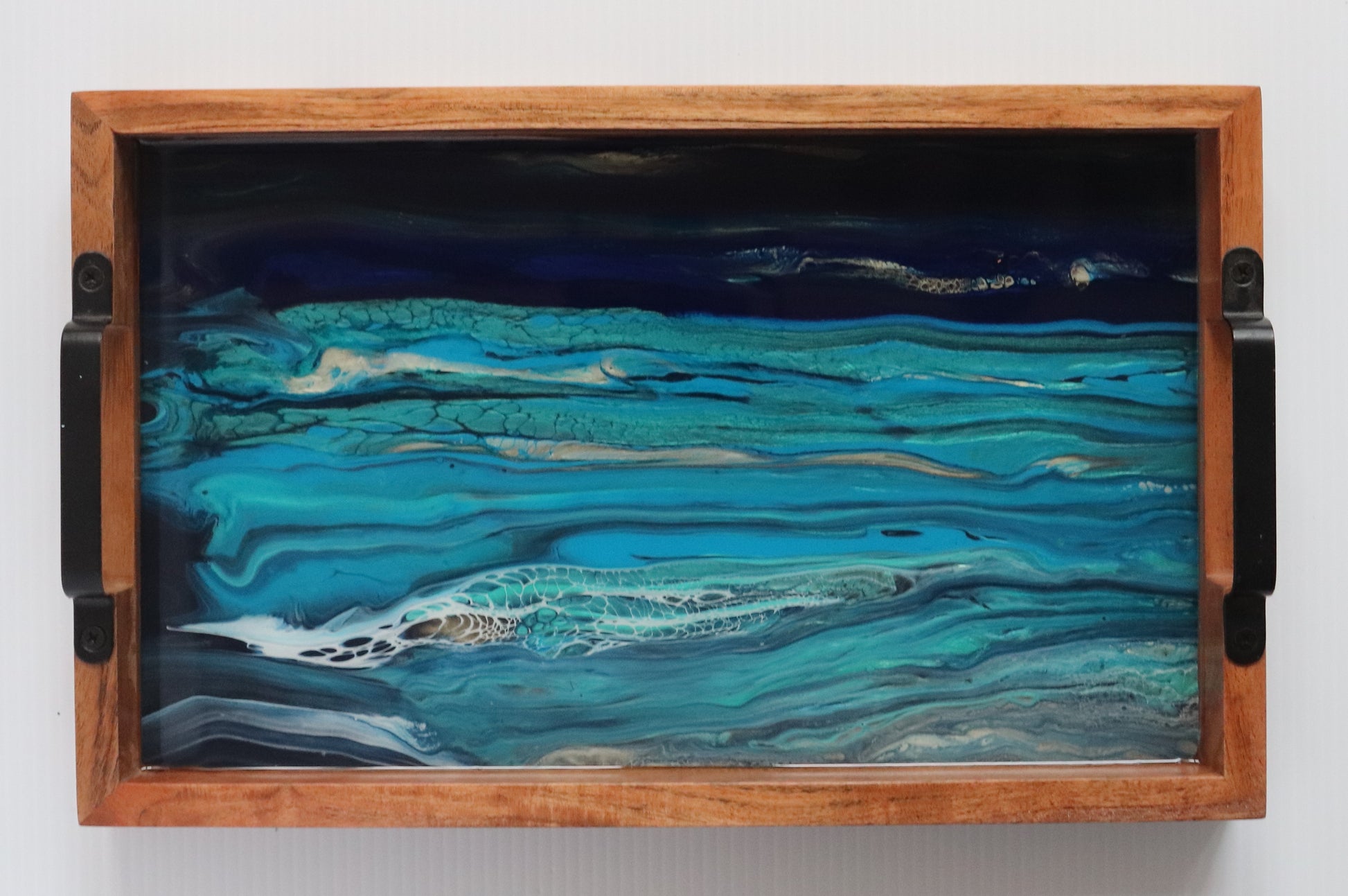 10 x 16 Acacia Serving Tray - Night Sea 1