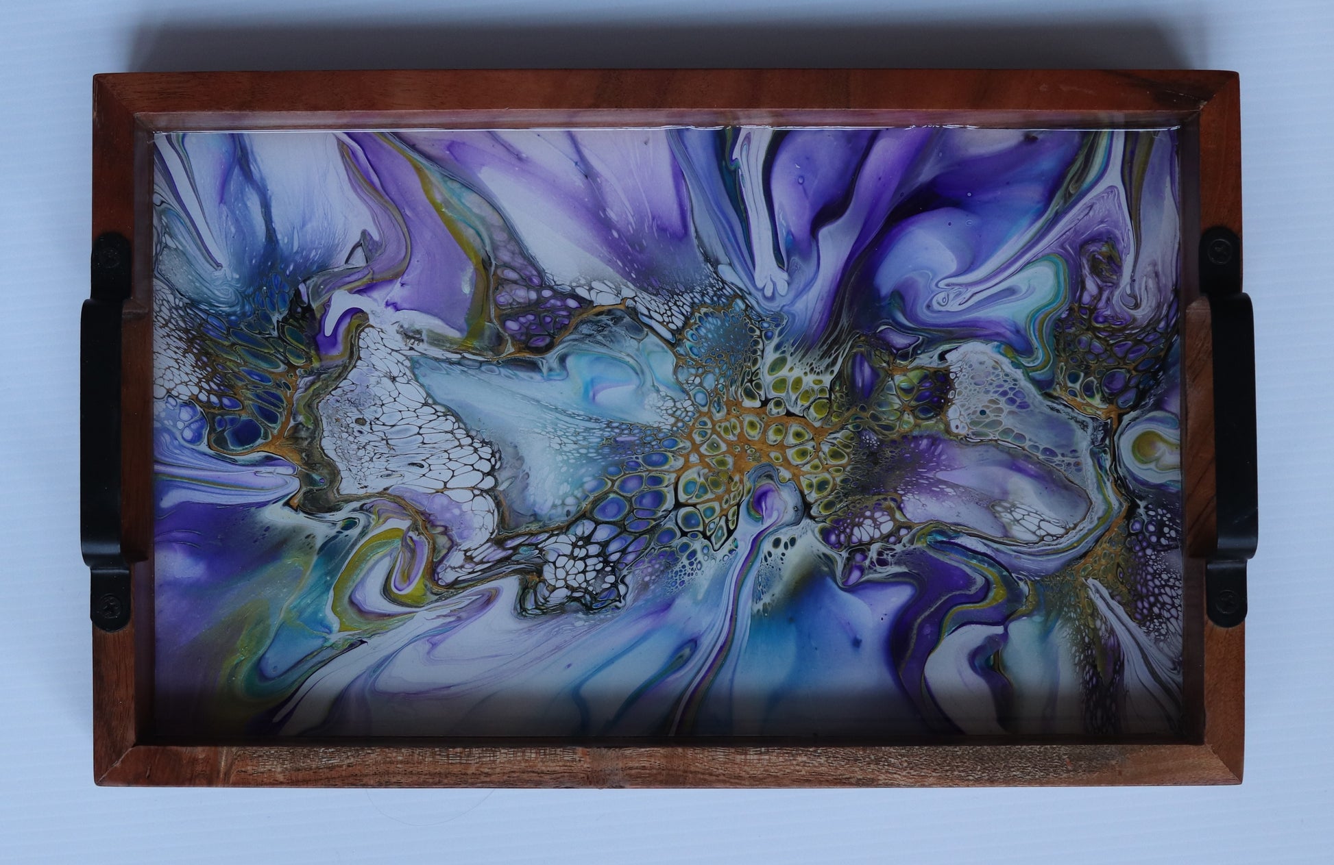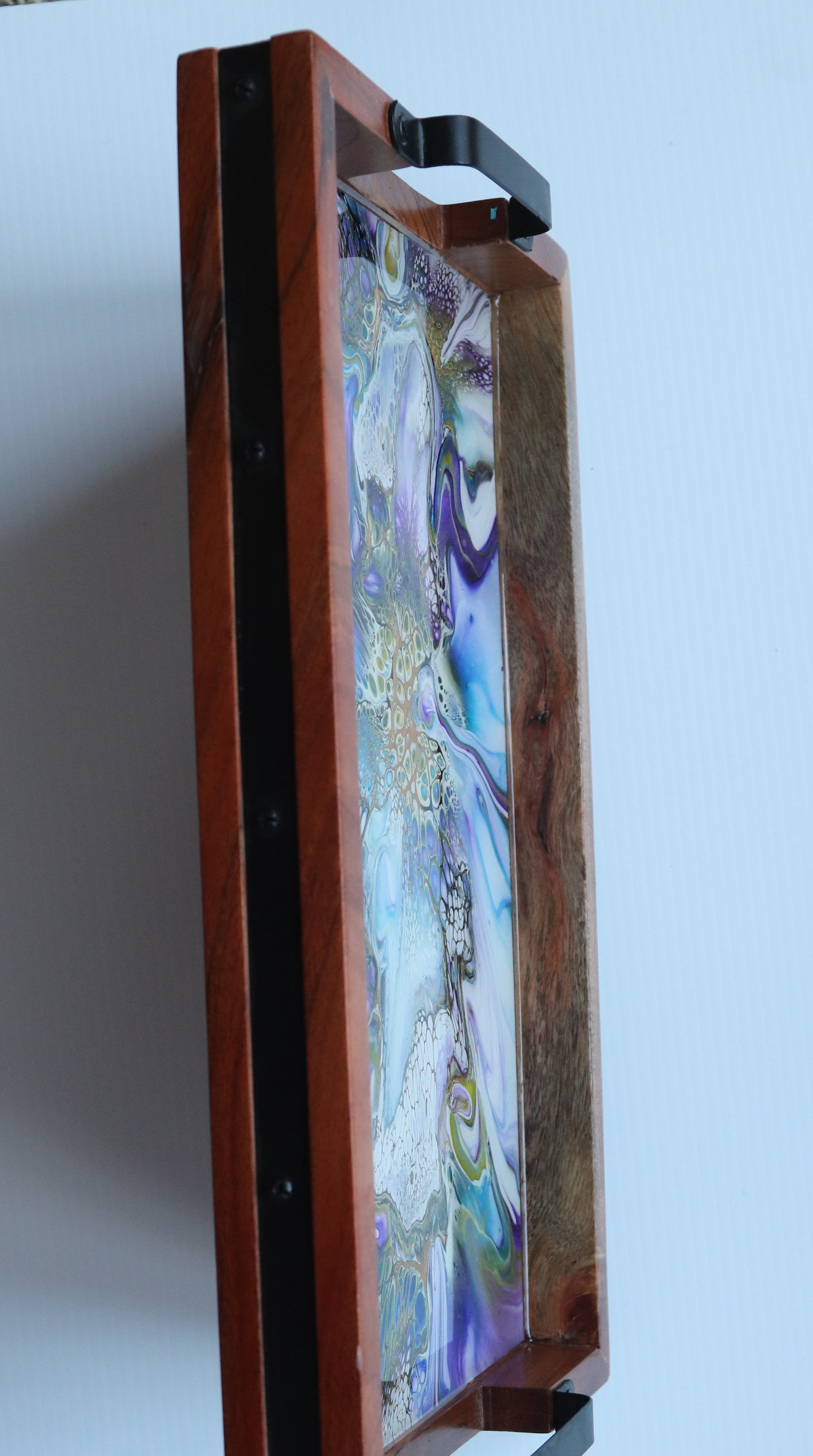 10 x 16 Acacia Serving Tray - Purple/Green 2