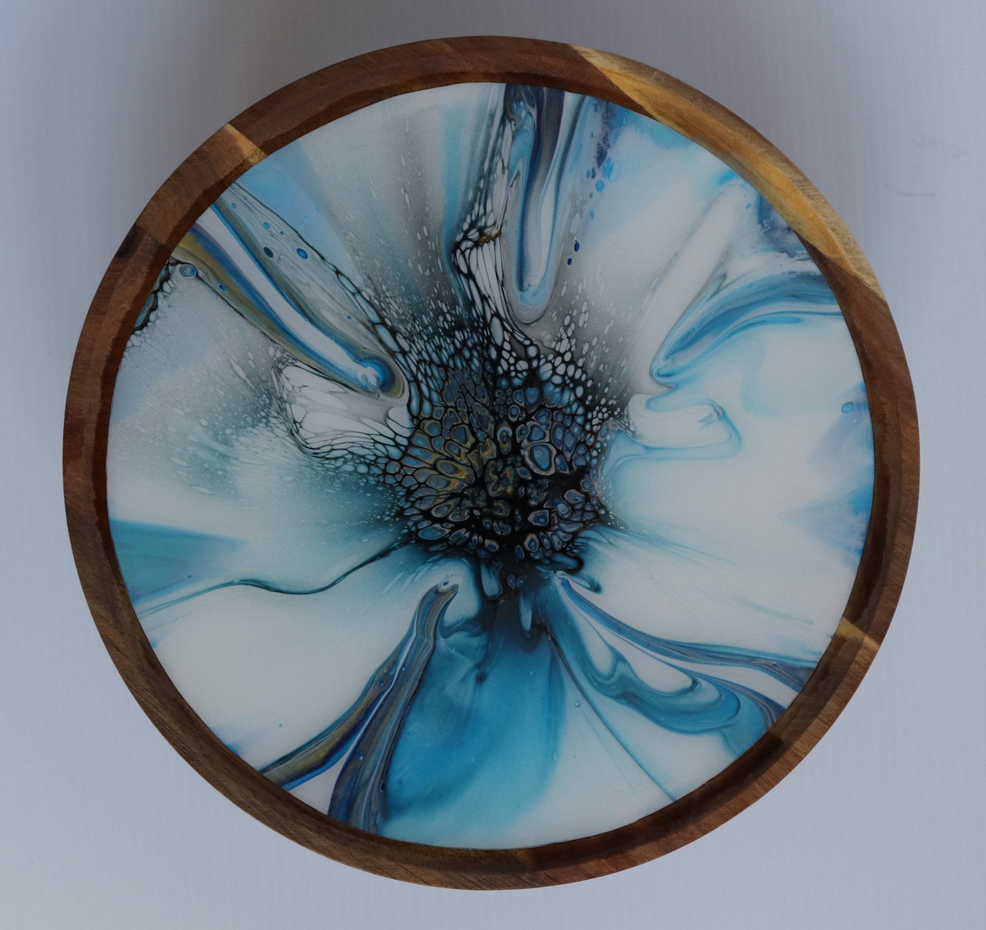 A Note on Resin: All products finished with resin will have small defects on the surface of the resin. If a speck of dust gets on the surface when the resin is drying, it will cause a small dimple in the surface. We do everything we can to control particulate during the finishing process, but it is next to impossible to get a perfect finish. Any defects are hard to see, and it is very unlikely that you will be able to see them in the product photos on our website. If this is a concern for you, please see us and our art in person at an art show.