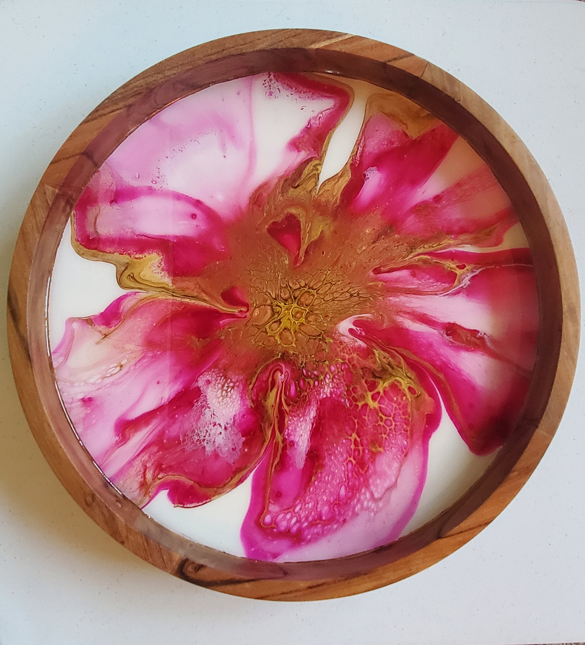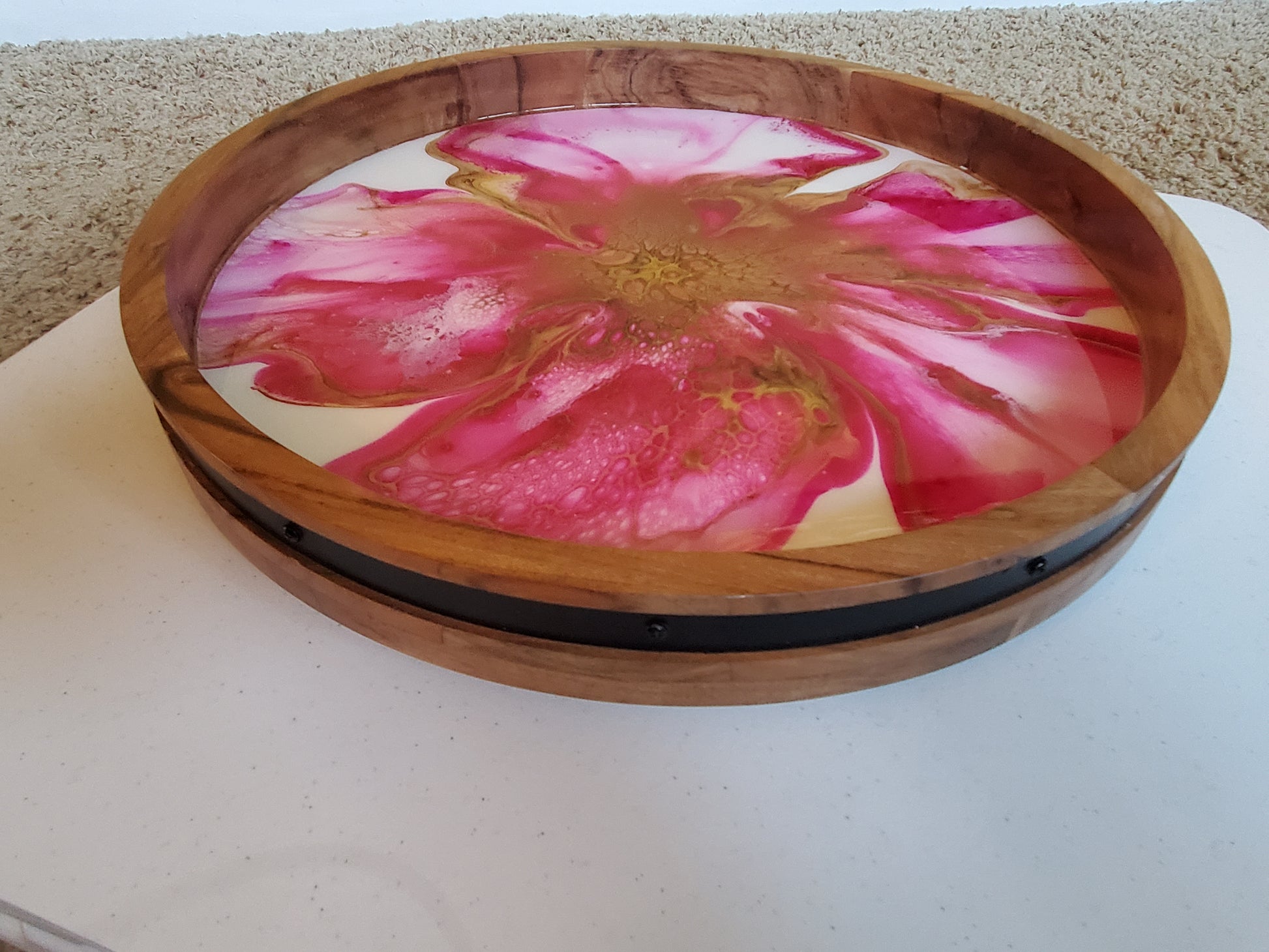 18" Acacia Lazy Susan - Pink/Gold SALE