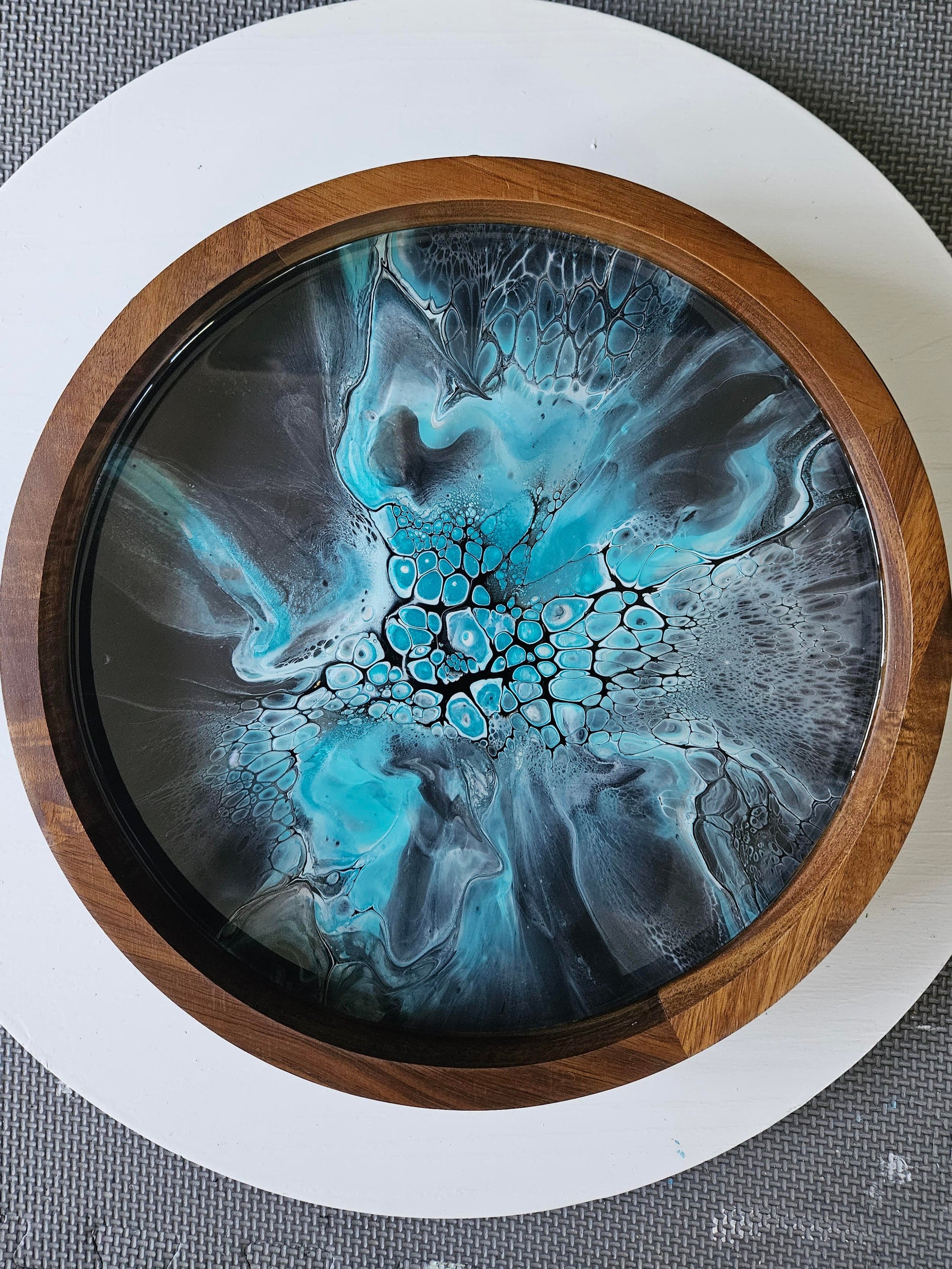 12" Acacia Lazy Susan - Teal/White