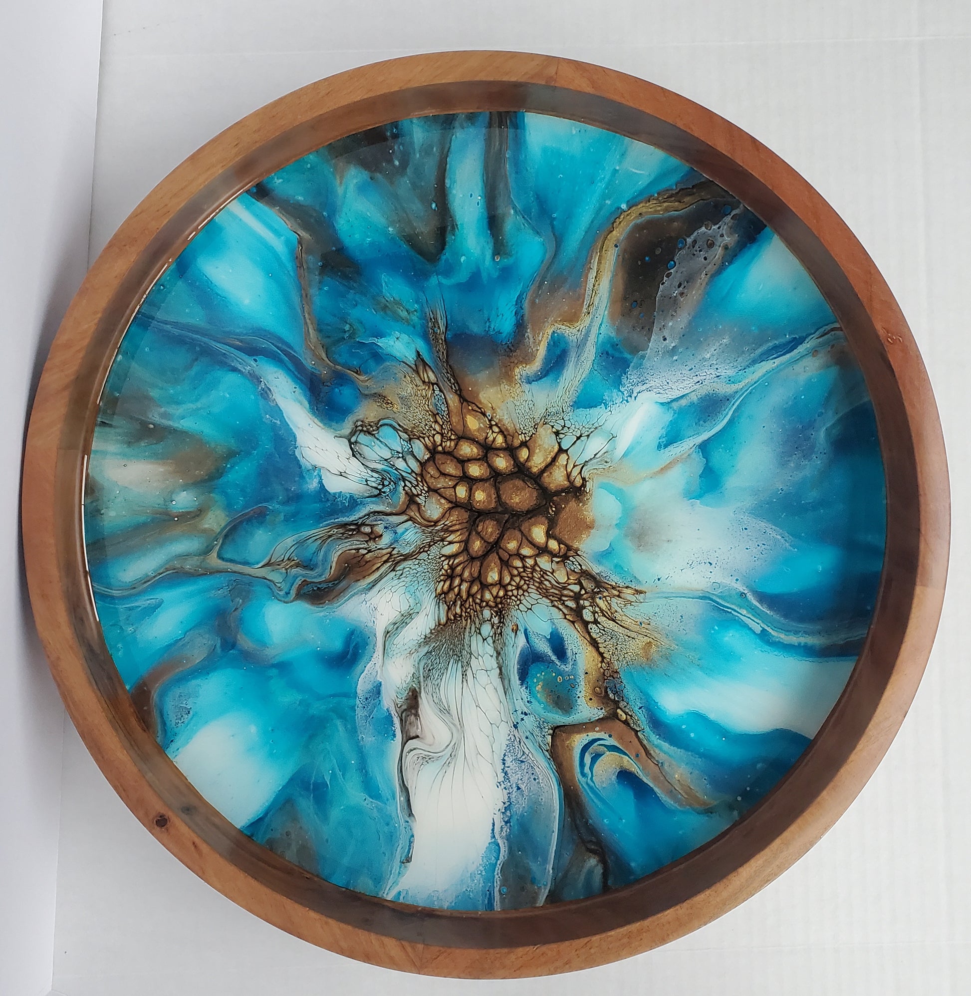 A Note on Resin: All products finished with resin will have small defects on the surface of the resin. If a speck of dust gets on the surface when the resin is drying, it will cause a small dimple in the surface. We do everything we can to control particulate during the finishing process, but it is next to impossible to get a perfect finish. Any defects are hard to see, and it is very unlikely that you will be able to see them in the product photos on our website. If this is a concern for you, please see us and our art in person at an art show.