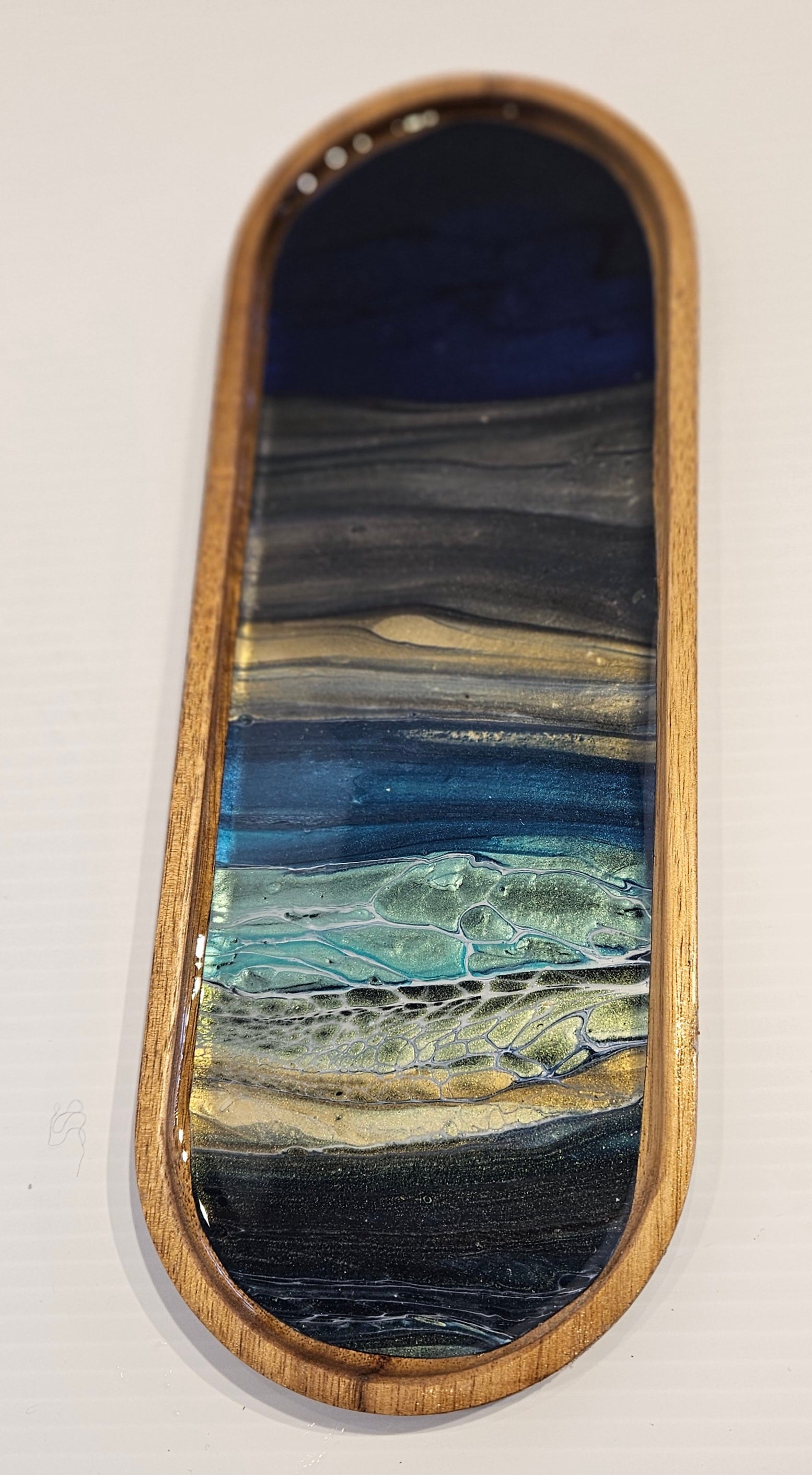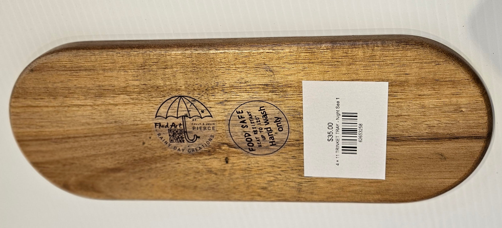A Note on Resin: All products finished with resin will have small defects on the surface of the resin. If a speck of dust gets on the surface when the resin is drying, it will cause a small dimple in the surface. We do everything we can to control particulate during the finishing process, but it is next to impossible to get a perfect finish. Any defects are hard to see, and it is very unlikely that you will be able to see them in the product photos on our website. If this is a concern for you, please see us and our art in person at an art show.