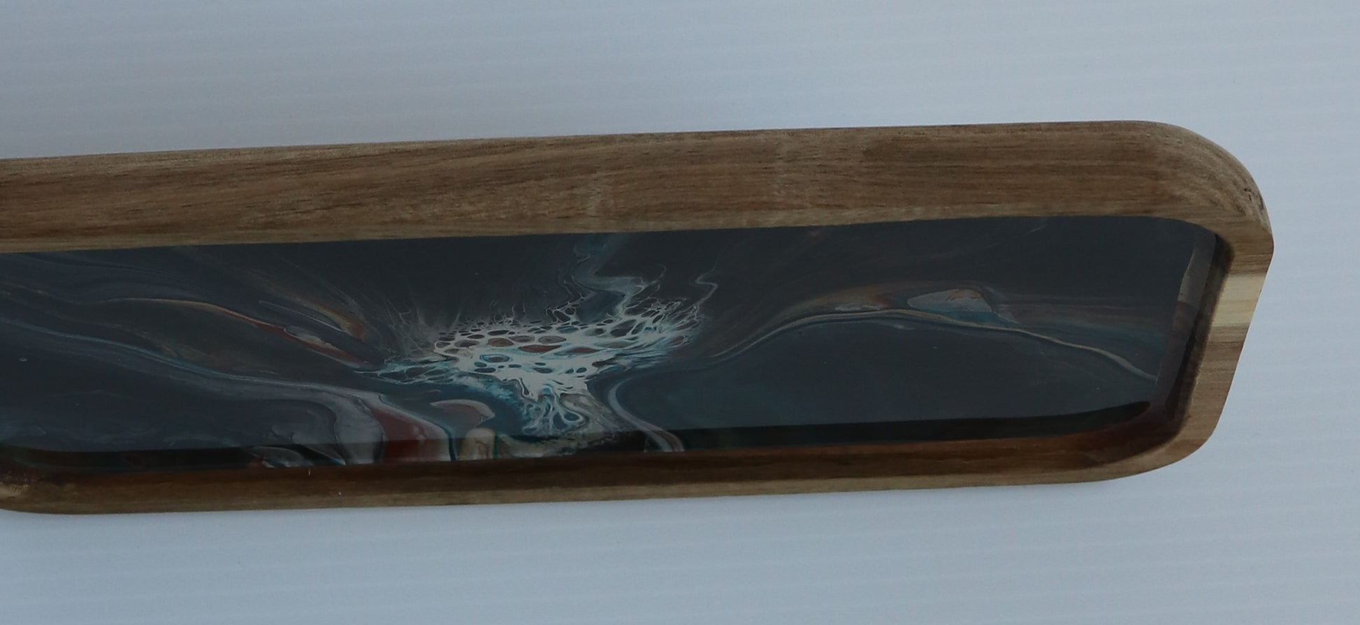 A Note on Resin: All products finished with resin will have small defects on the surface of the resin. If a speck of dust gets on the surface when the resin is drying, it will cause a small dimple in the surface. We do everything we can to control particulate during the finishing process, but it is next to impossible to get a perfect finish. Any defects are hard to see, and it is very unlikely that you will be able to see them in the product photos on our website. If this is a concern for you, please see us and our art in person at an art show.