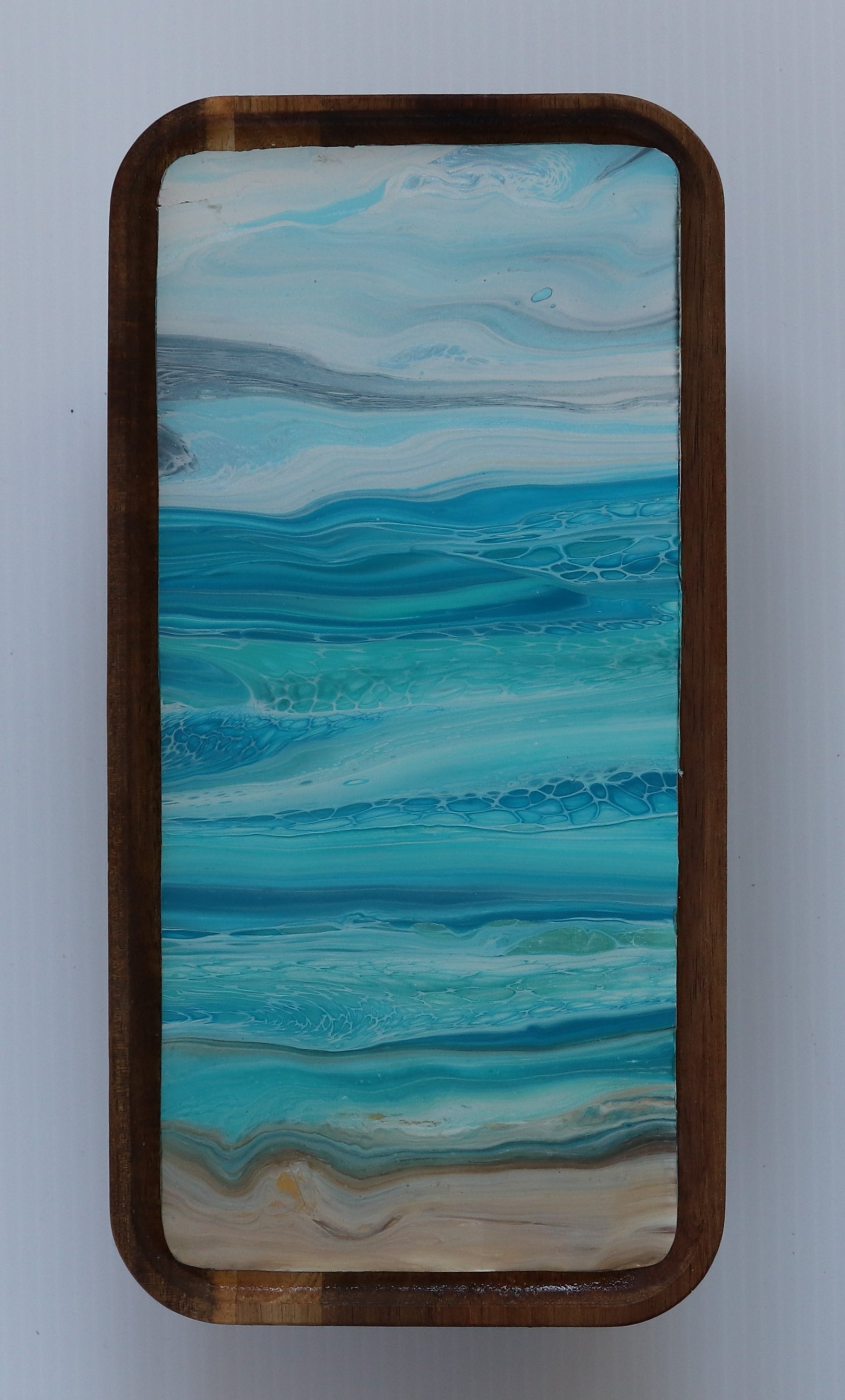 A Note on Resin: All products finished with resin will have small defects on the surface of the resin. If a speck of dust gets on the surface when the resin is drying, it will cause a small dimple in the surface. We do everything we can to control particulate during the finishing process, but it is next to impossible to get a perfect finish. Any defects are hard to see, and it is very unlikely that you will be able to see them in the product photos on our website. If this is a concern for you, please see us and our art in person at an art show.