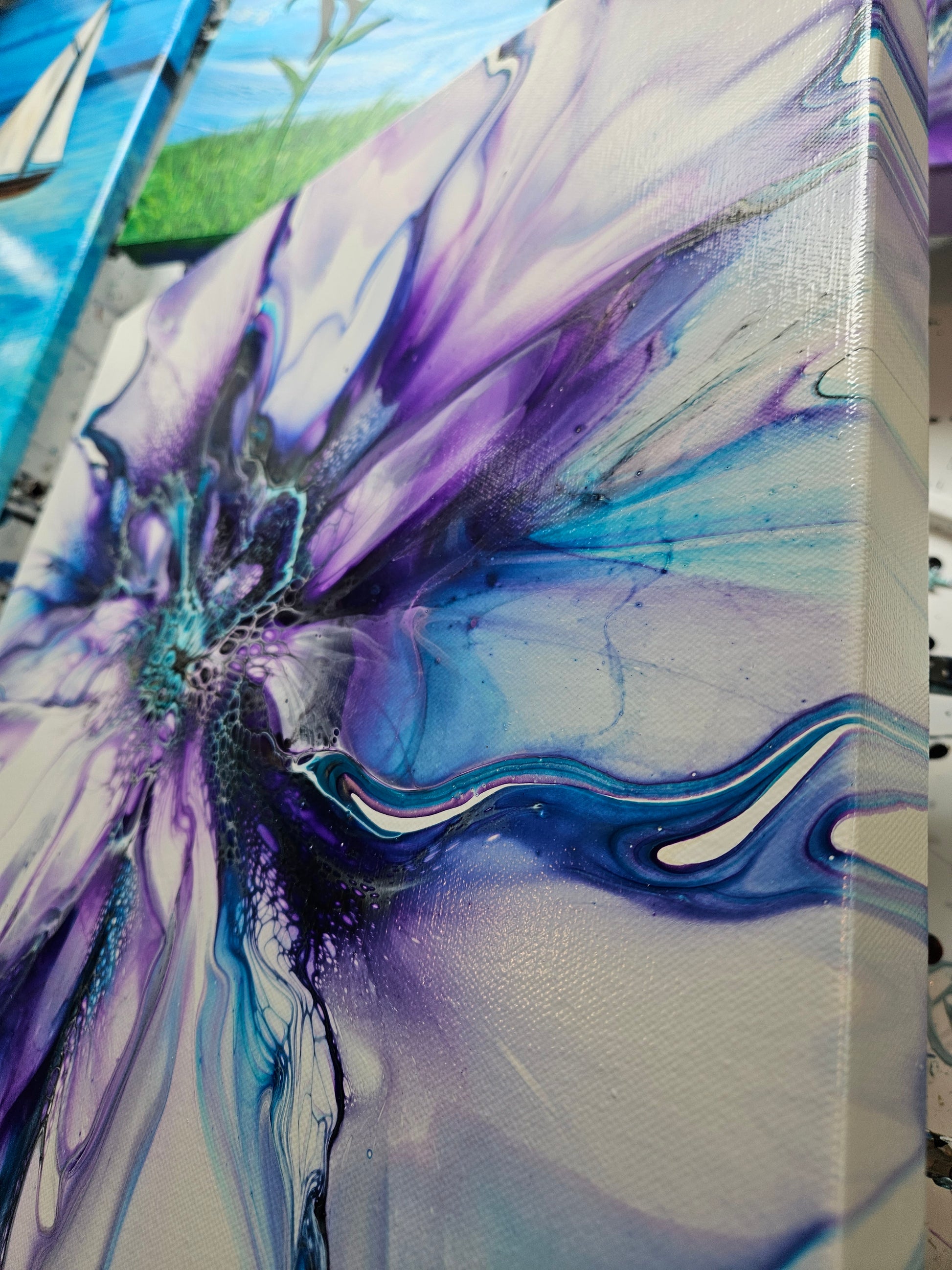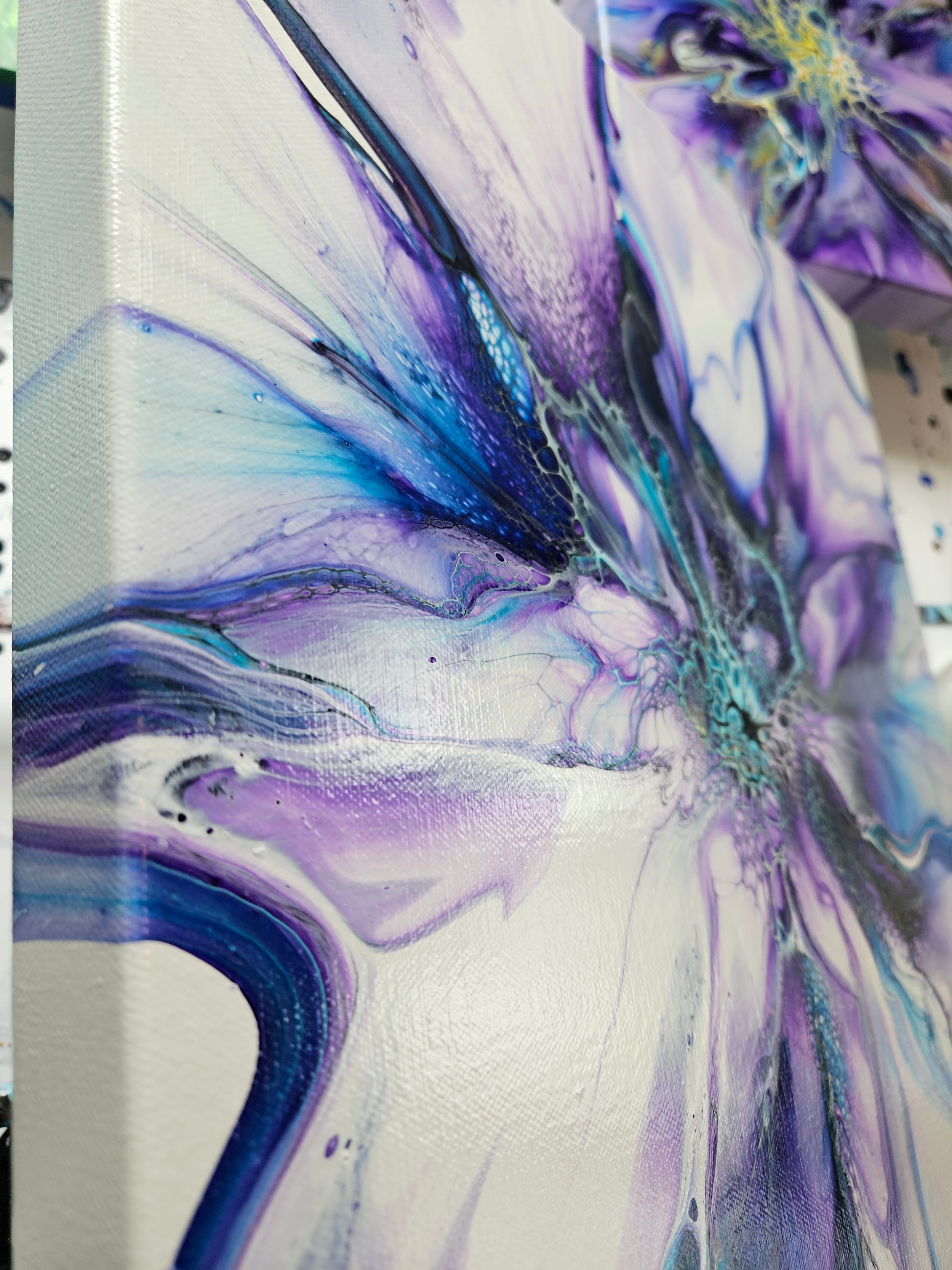 Our paintings are unique original art. They are created using a variety of fluid art techniques. We tend to use pigments in our work. Because the pigments give the paintings a lot of depth and movement that you can’t see in a photograph, we believe our work shows better in person than over the internet.