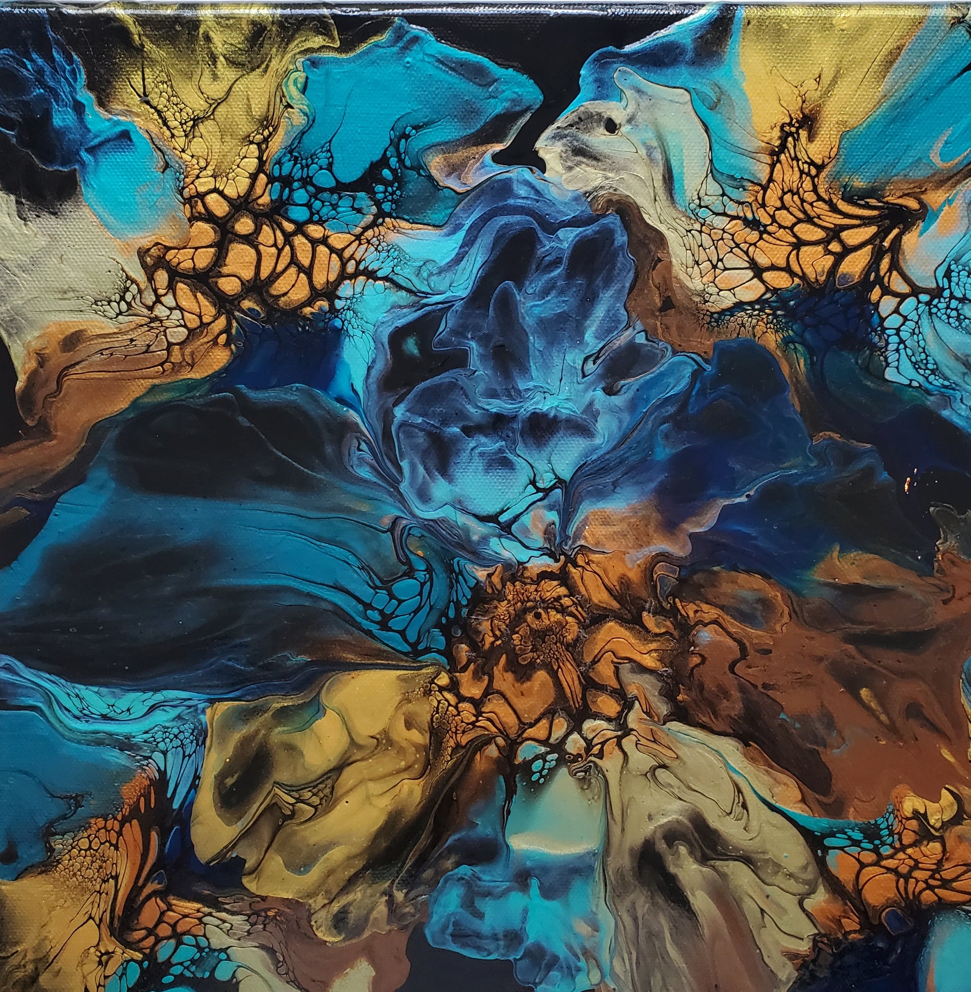 Our paintings are unique original art. They are created using a variety of fluid art techniques. We tend to use pigments in our work. Because the pigments give the paintings a lot of depth and movement that you can’t see in a photograph, we believe our work shows better in person than over the internet.