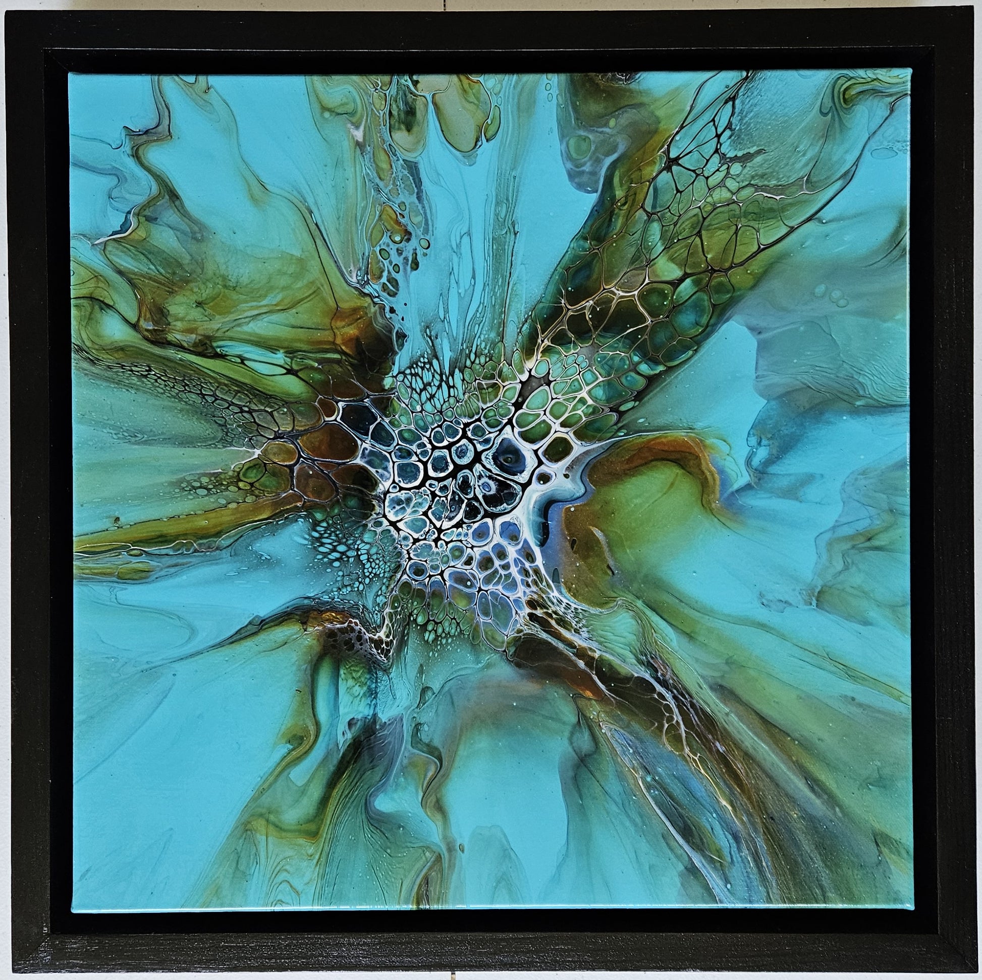 Our paintings are unique original art. They are created using a variety of fluid art techniques. We tend to use pigments in our work. Because the pigments give the paintings a lot of depth and movement that you can’t see in a photograph, we believe our work shows better in person than over the internet.