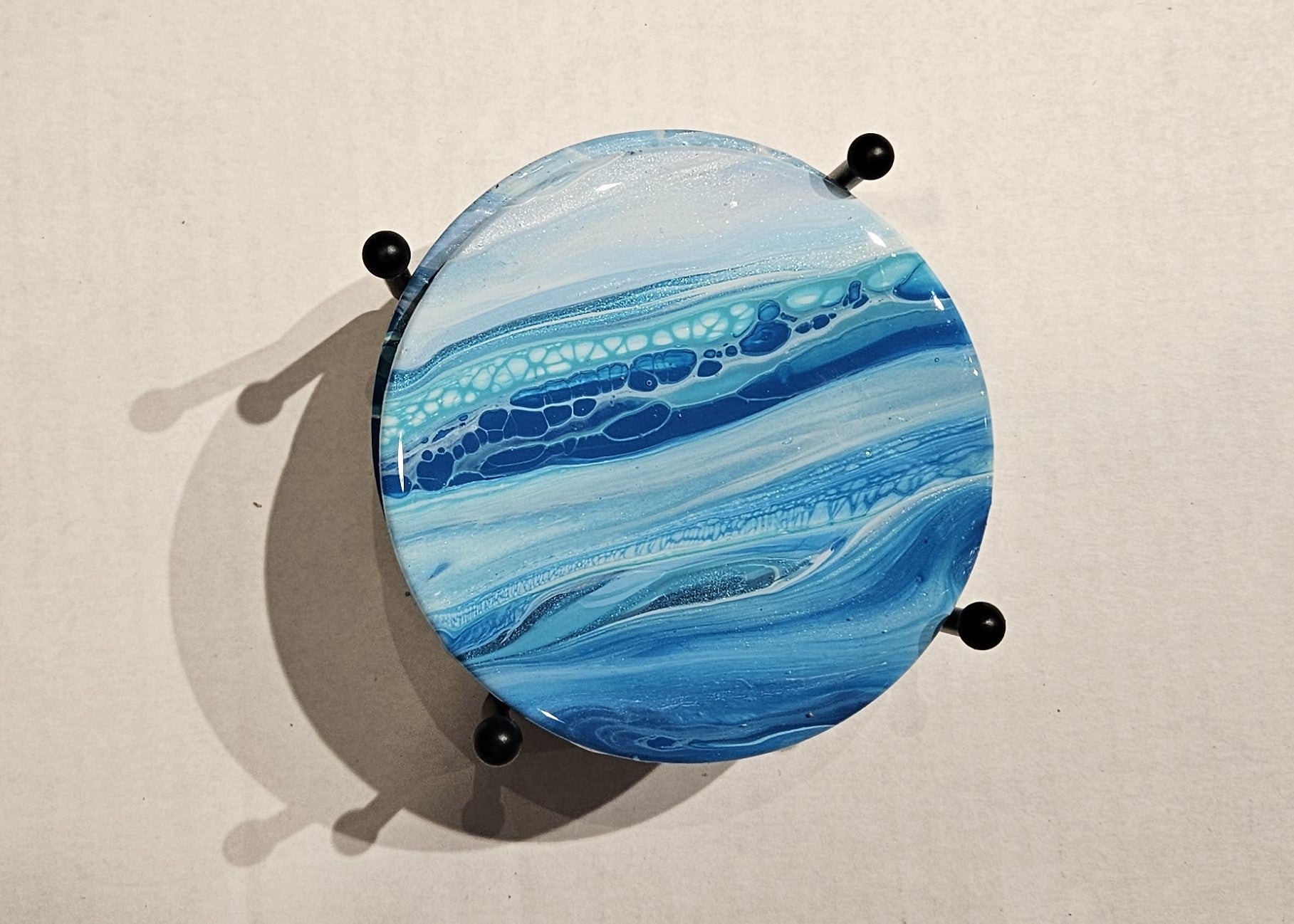 A Note on Resin: All products finished with resin will have small defects on the surface of the resin. If a speck of dust gets on the surface when the resin is drying, it will cause a small dimple in the surface. We do everything we can to control particulate during the finishing process, but it is next to impossible to get a perfect finish. Any defects are hard to see, and it is very unlikely that you will be able to see them in the product photos on our website. If this is a concern for you, please see us and our art in person at an art show.