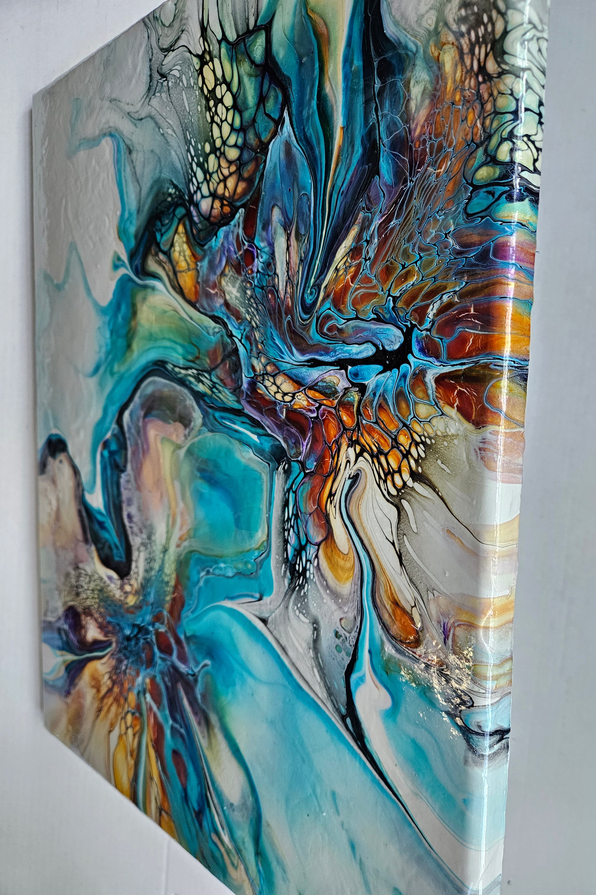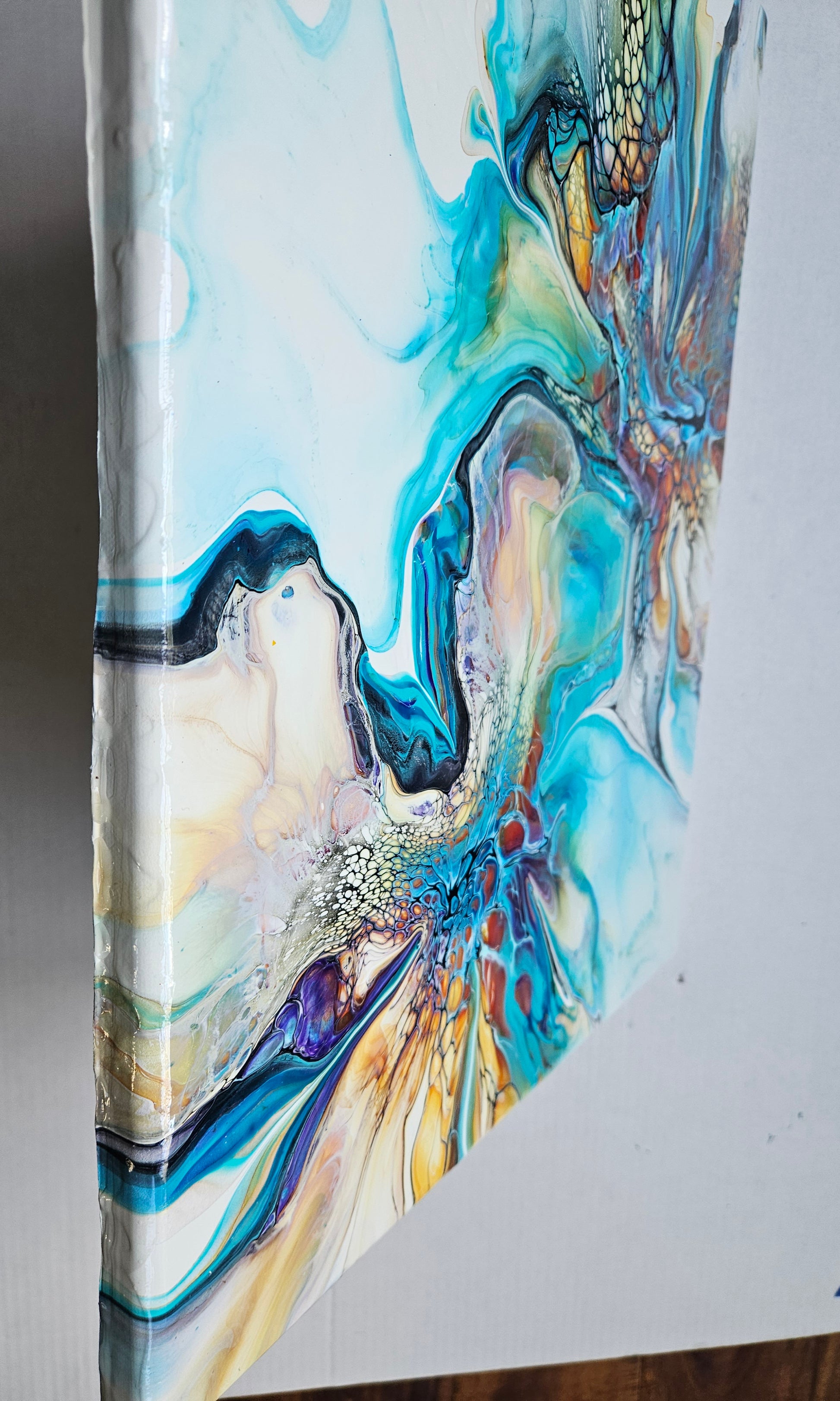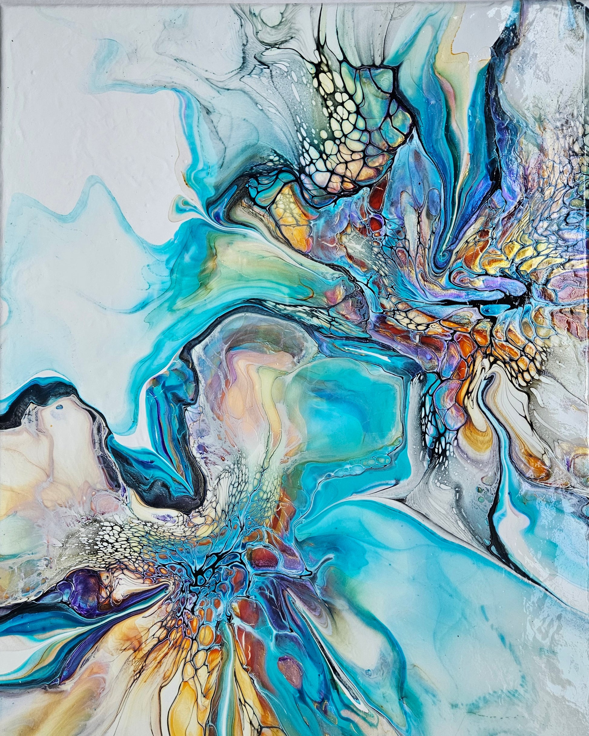 Our paintings are unique original art. They are created using a variety of fluid art techniques. We tend to use pigments in our work. Because the pigments give the paintings a lot of depth and movement that you can’t see in a photograph, we believe our work shows better in person than over the internet.
