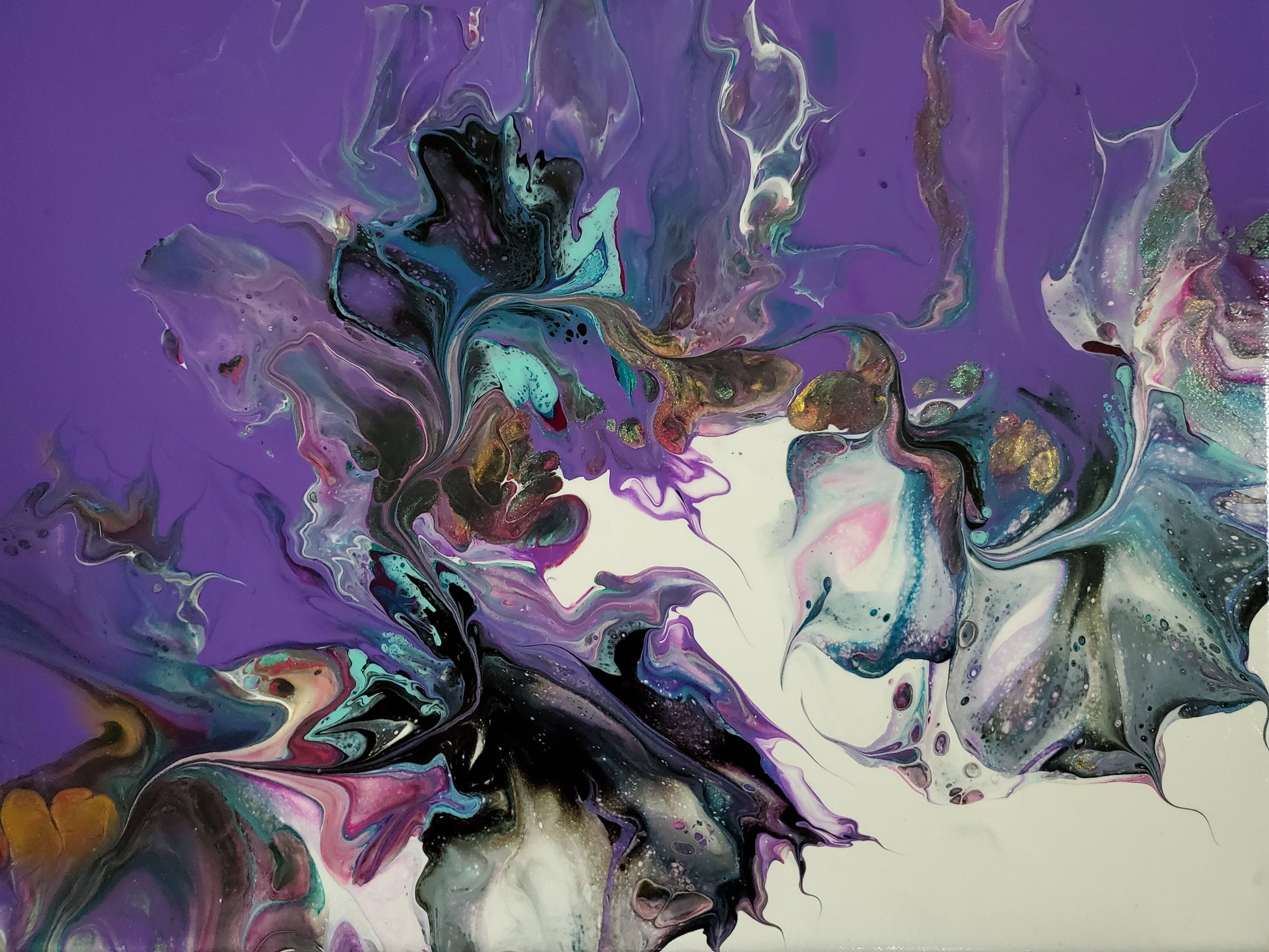 Our paintings are unique original art. They are created using a variety of fluid art techniques. We tend to use pigments in our work. Because the pigments give the paintings a lot of depth and movement that you can’t see in a photograph, we believe our work shows better in person than over the internet.