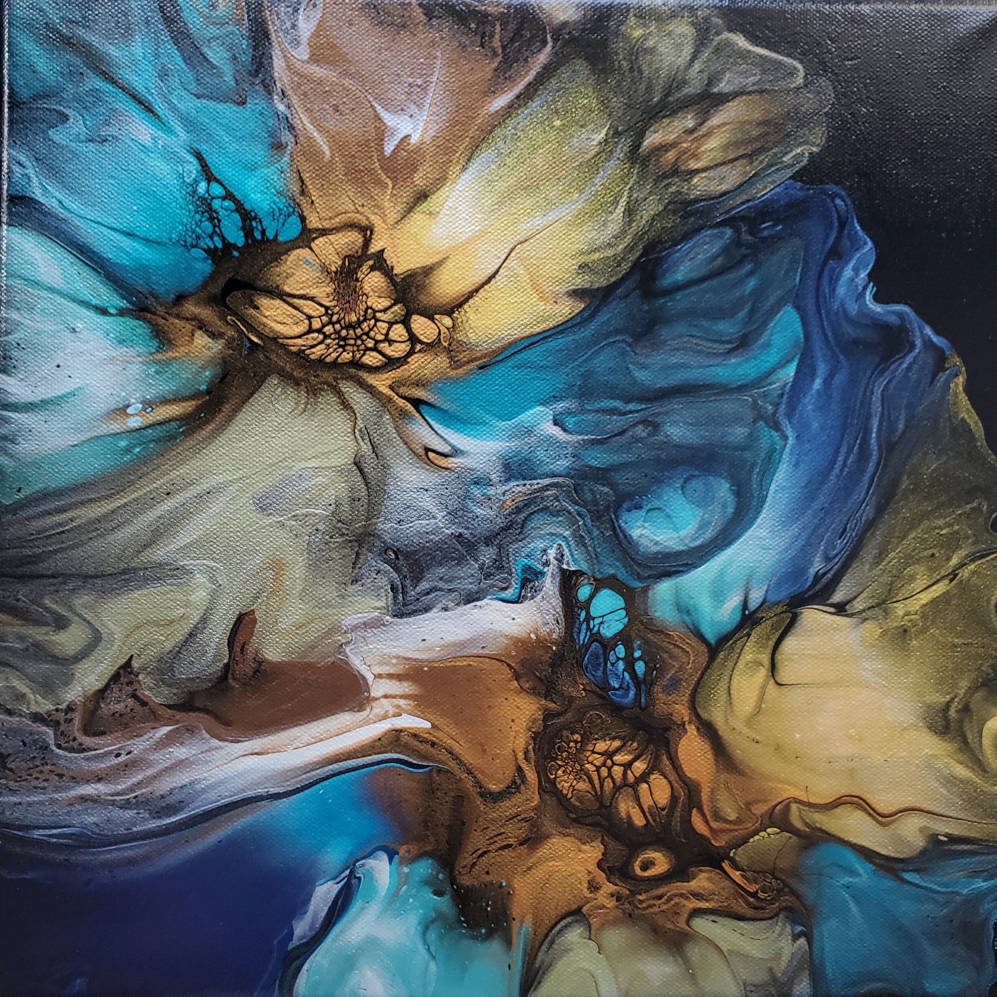 Our paintings are unique original art. They are created using a variety of fluid art techniques. We tend to use pigments in our work. Because the pigments give the paintings a lot of depth and movement that you can’t see in a photograph, we believe our work shows better in person than over the internet.