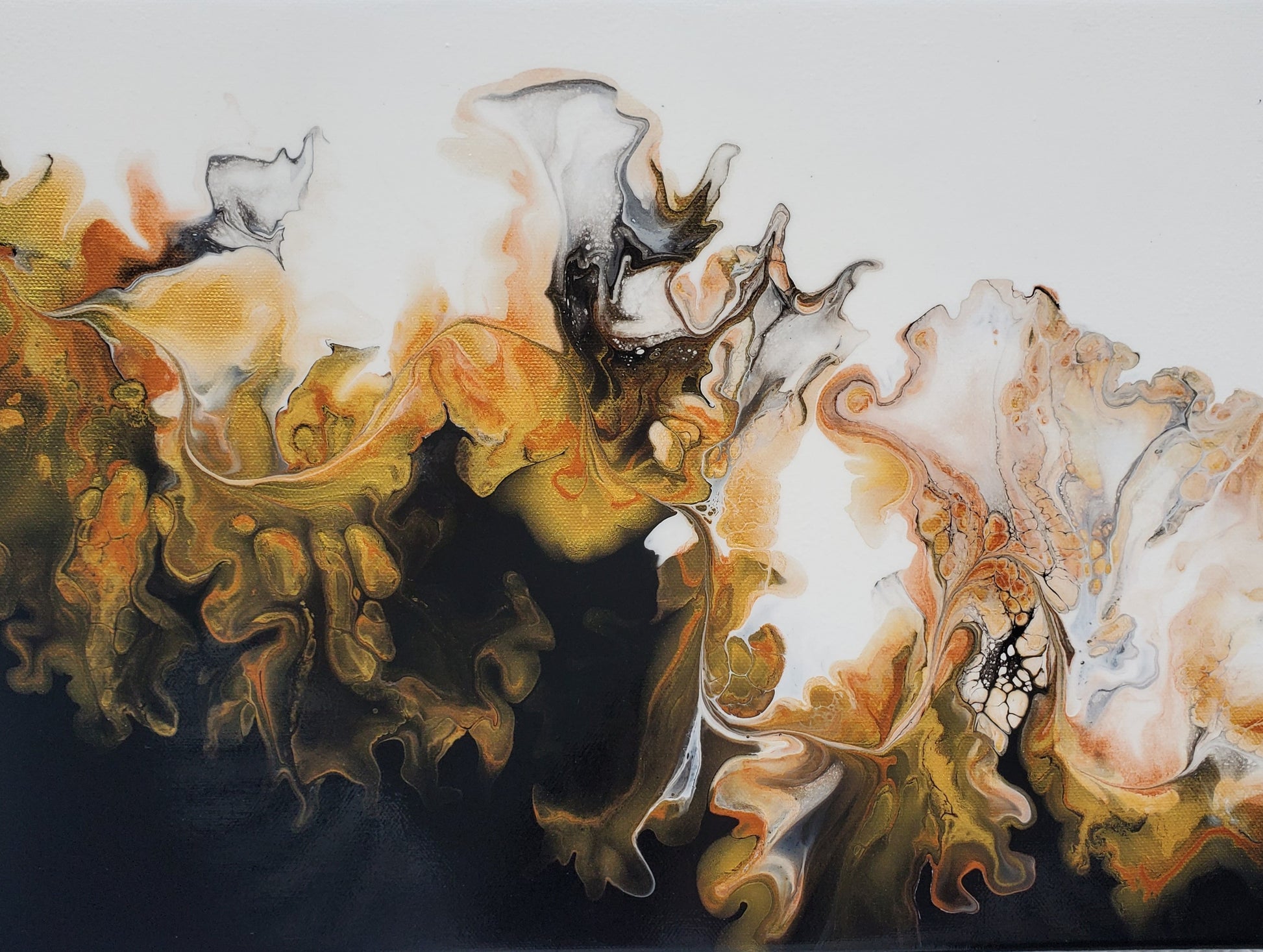 Our paintings are unique original art. They are created using a variety of fluid art techniques. We tend to use pigments in our work. Because the pigments give the paintings a lot of depth and movement that you can’t see in a photograph, we believe our work shows better in person than over the internet.