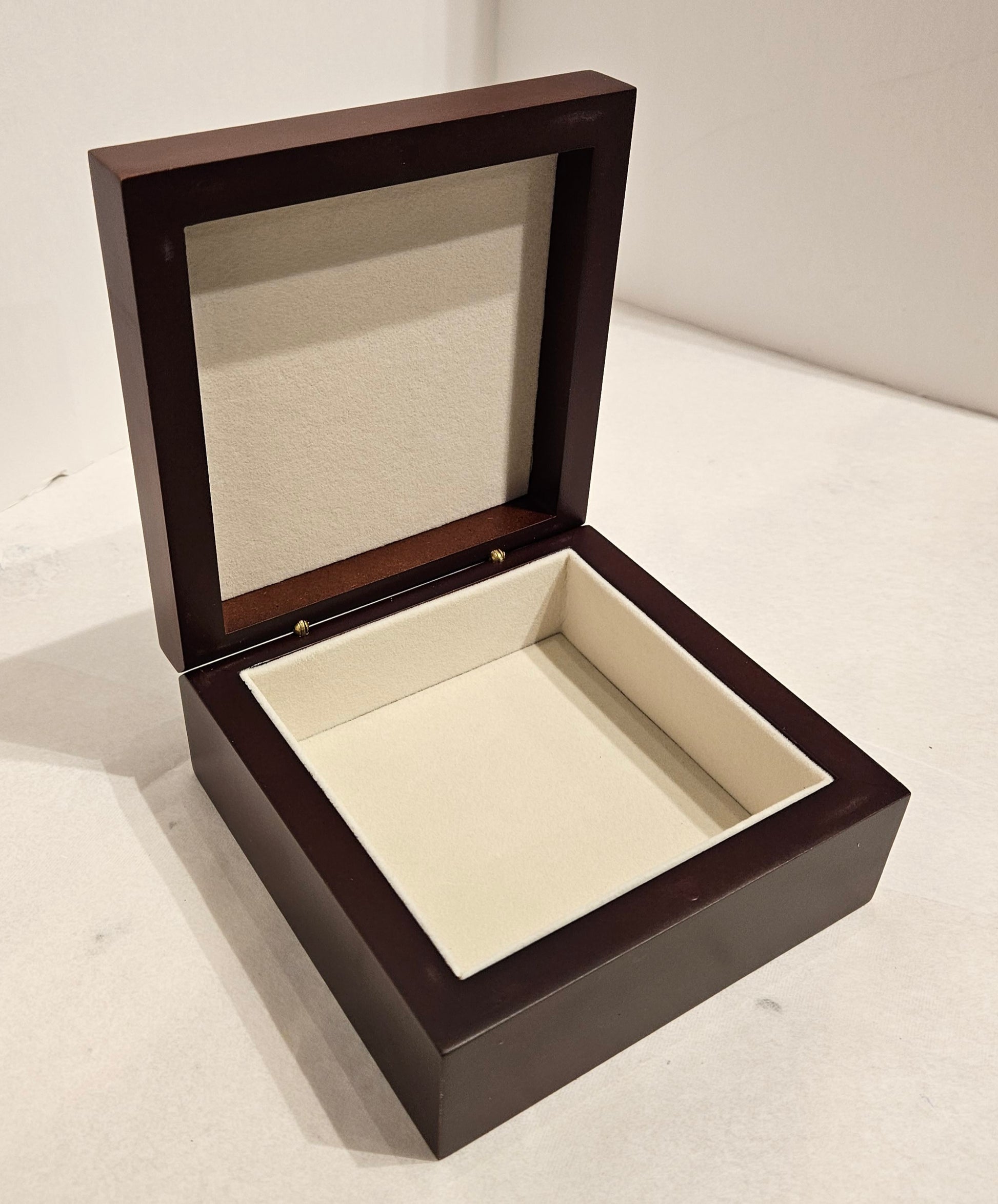 Size (inches): 5 1/4 x 5 1/4 x 2 1/2; Interior 1 1/4 deep
