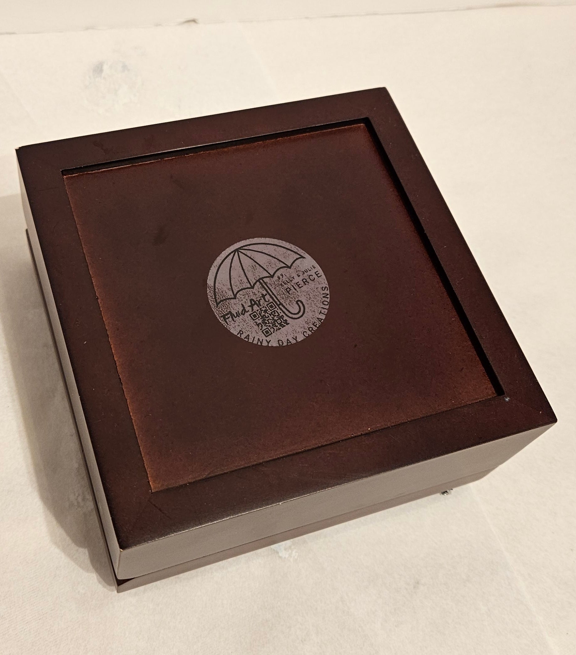 A Note on Resin: All products finished with resin will have small defects on the surface of the resin. If a speck of dust gets on the surface when the resin is drying, it will cause a small dimple in the surface. We do everything we can to control particulate during the finishing process, but it is next to impossible to get a perfect finish. Any defects are hard to see, and it is very unlikely that you will be able to see them in the product photos on our website. If this is a concern for you, please see us and our art in person at an art show.