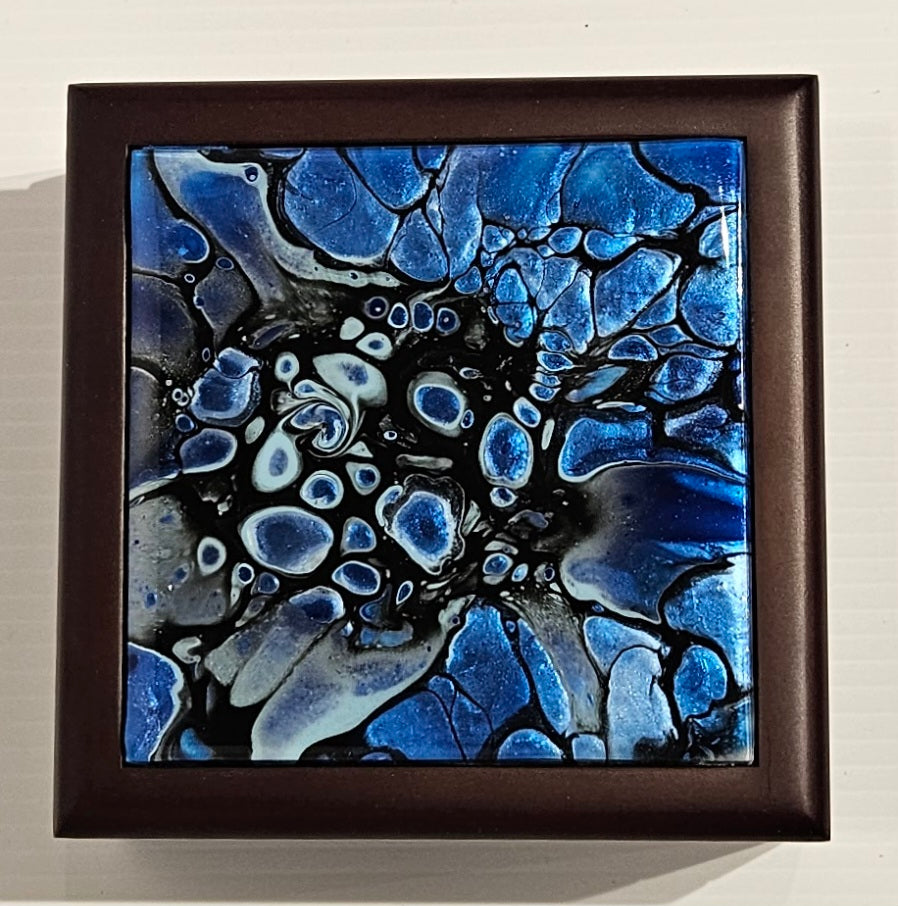 A Note on Resin: All products finished with resin will have small defects on the surface of the resin. If a speck of dust gets on the surface when the resin is drying, it will cause a small dimple in the surface. We do everything we can to control particulate during the finishing process, but it is next to impossible to get a perfect finish. Any defects are hard to see, and it is very unlikely that you will be able to see them in the product photos on our website. If this is a concern for you, please see us and our art in person at an art show.