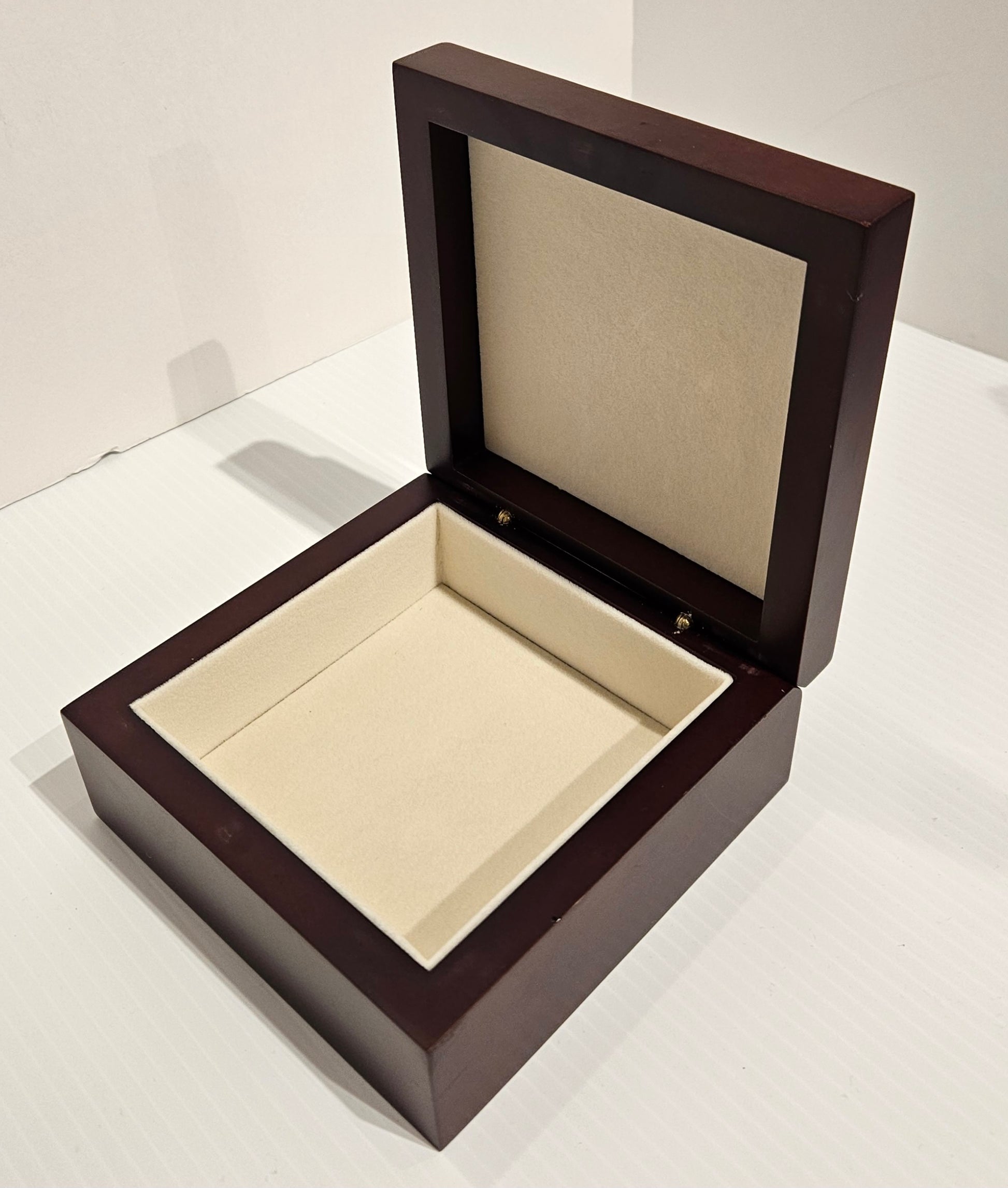 Size (inches): 5 1/4 x 5 1/4 x 2 1/2; Interior 1 1/4 deep