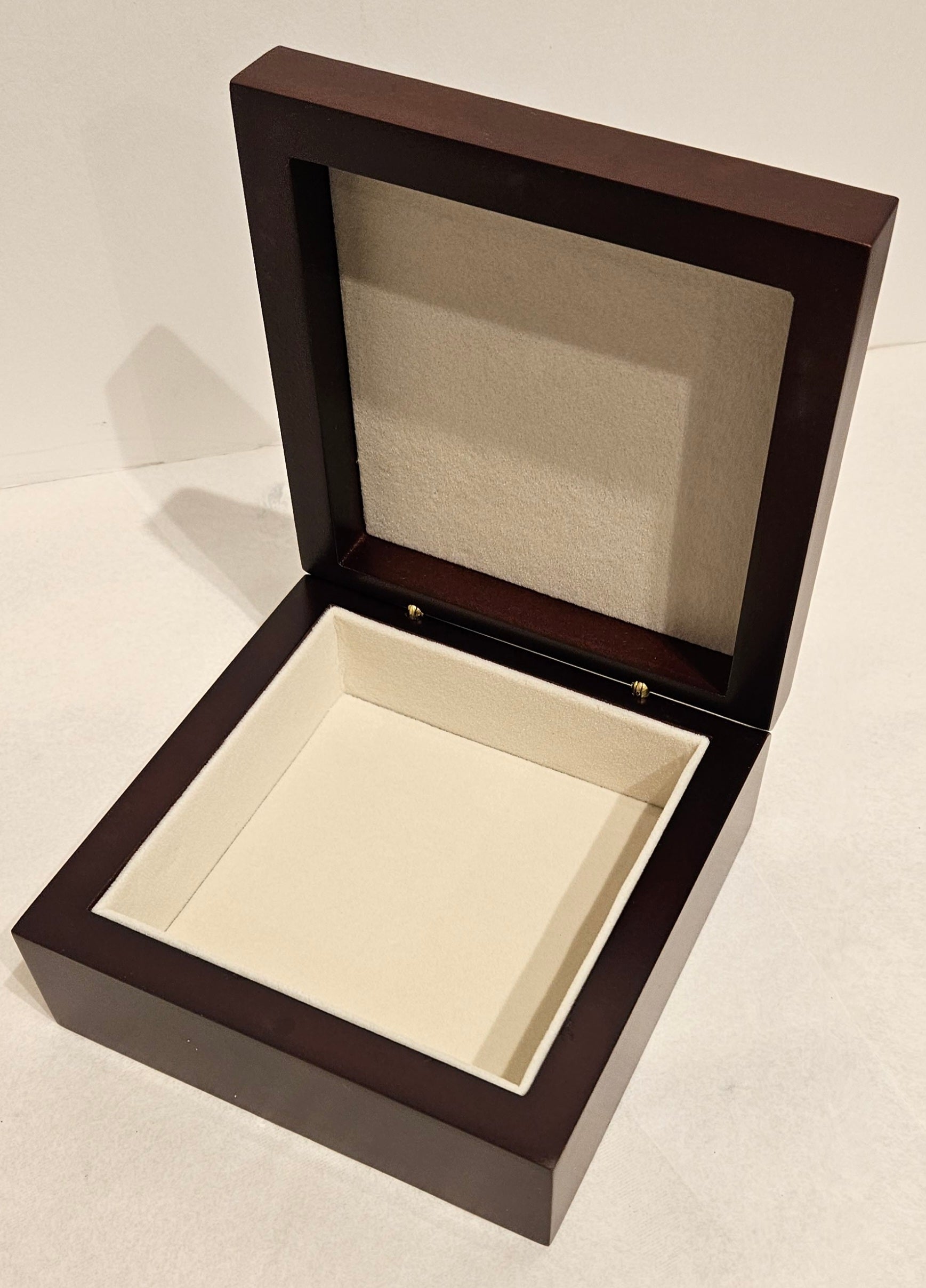 Size (inches): 5 1/4 x 5 1/4 x 2 1/2; Interior 1 1/4 deep