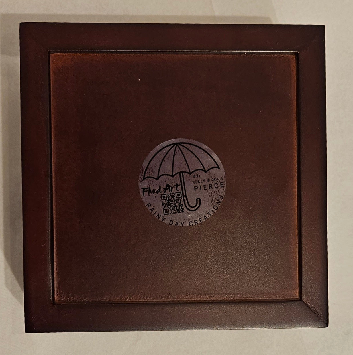 A Note on Resin: All products finished with resin will have small defects on the surface of the resin. If a speck of dust gets on the surface when the resin is drying, it will cause a small dimple in the surface. We do everything we can to control particulate during the finishing process, but it is next to impossible to get a perfect finish. Any defects are hard to see, and it is very unlikely that you will be able to see them in the product photos on our website. If this is a concern for you, please see us and our art in person at an art show.