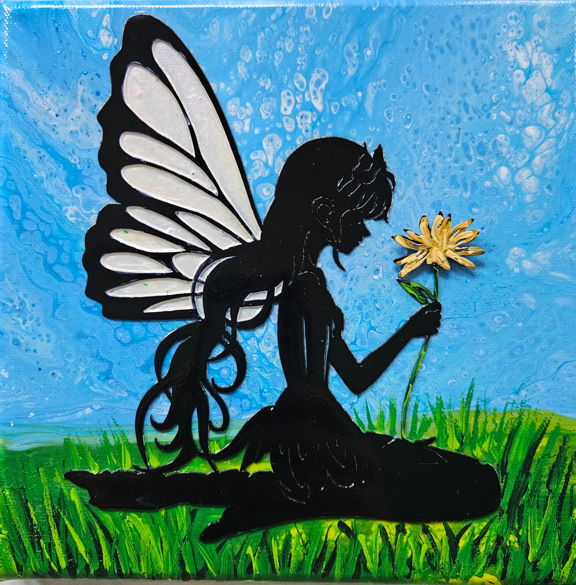 Our paintings are unique original art. They are created using a variety of fluid art techniques. We tend to use pigments in our work. Because the pigments give the paintings a lot of depth and movement that you can’t see in a photograph, we believe our work shows better in person than over the internet.