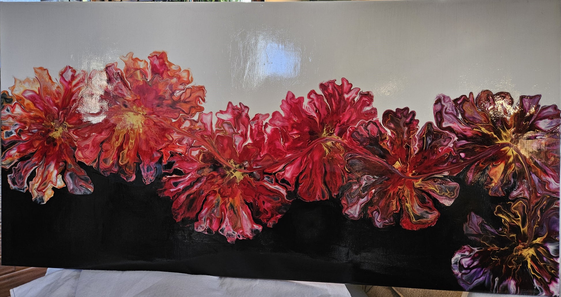 Our paintings are unique original art. They are created using a variety of fluid art techniques. We tend to use pigments in our work. Because the pigments give the paintings a lot of depth and movement that you can’t see in a photograph, we believe our work shows better in person than over the internet.
