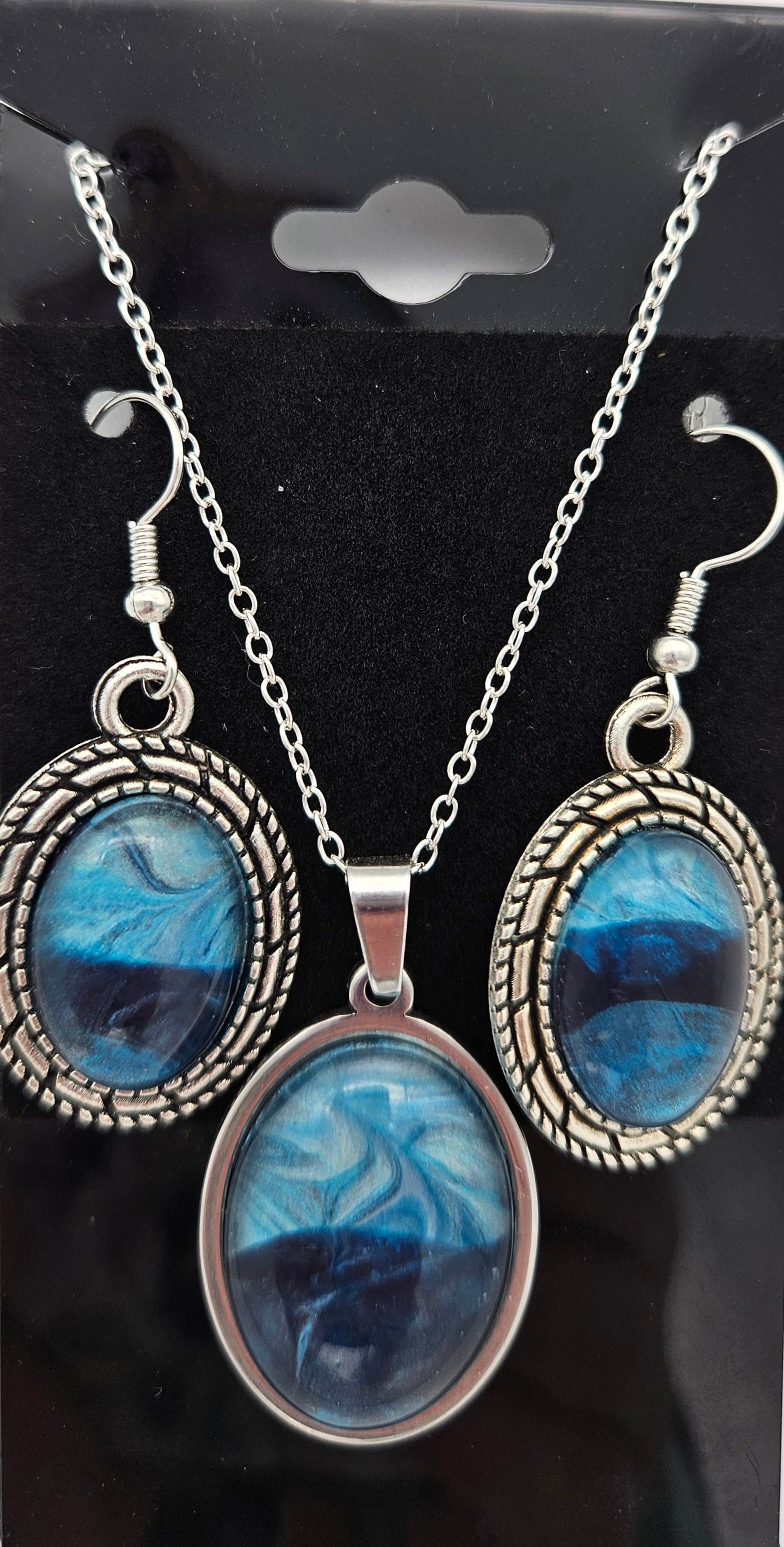 Pendant earring set - Silver - Shades of blue - Oval