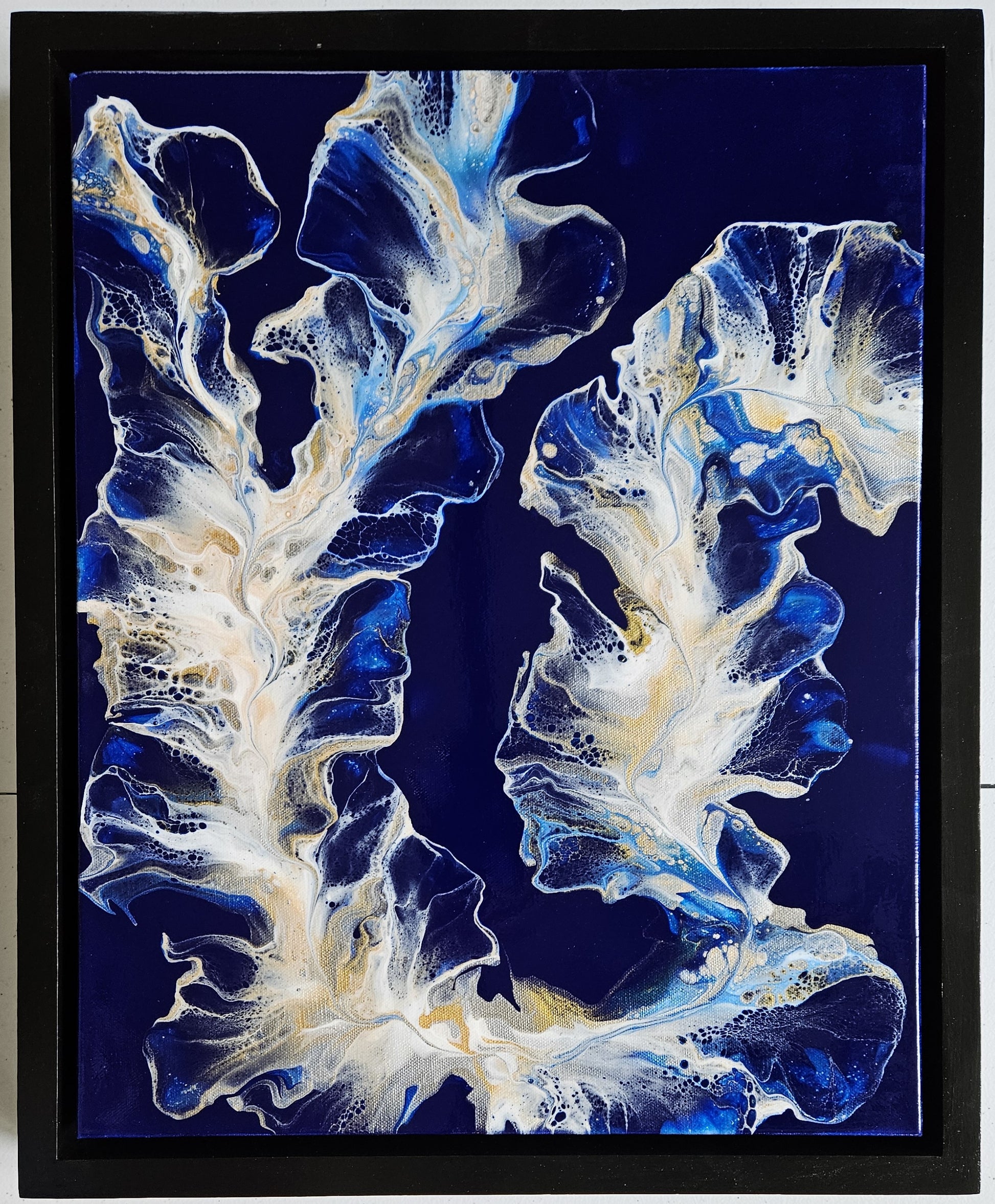 Our paintings are unique original art. They are created using a variety of fluid art techniques. We tend to use pigments in our work. Because the pigments give the paintings a lot of depth and movement that you can’t see in a photograph, we believe our work shows better in person than over the internet.