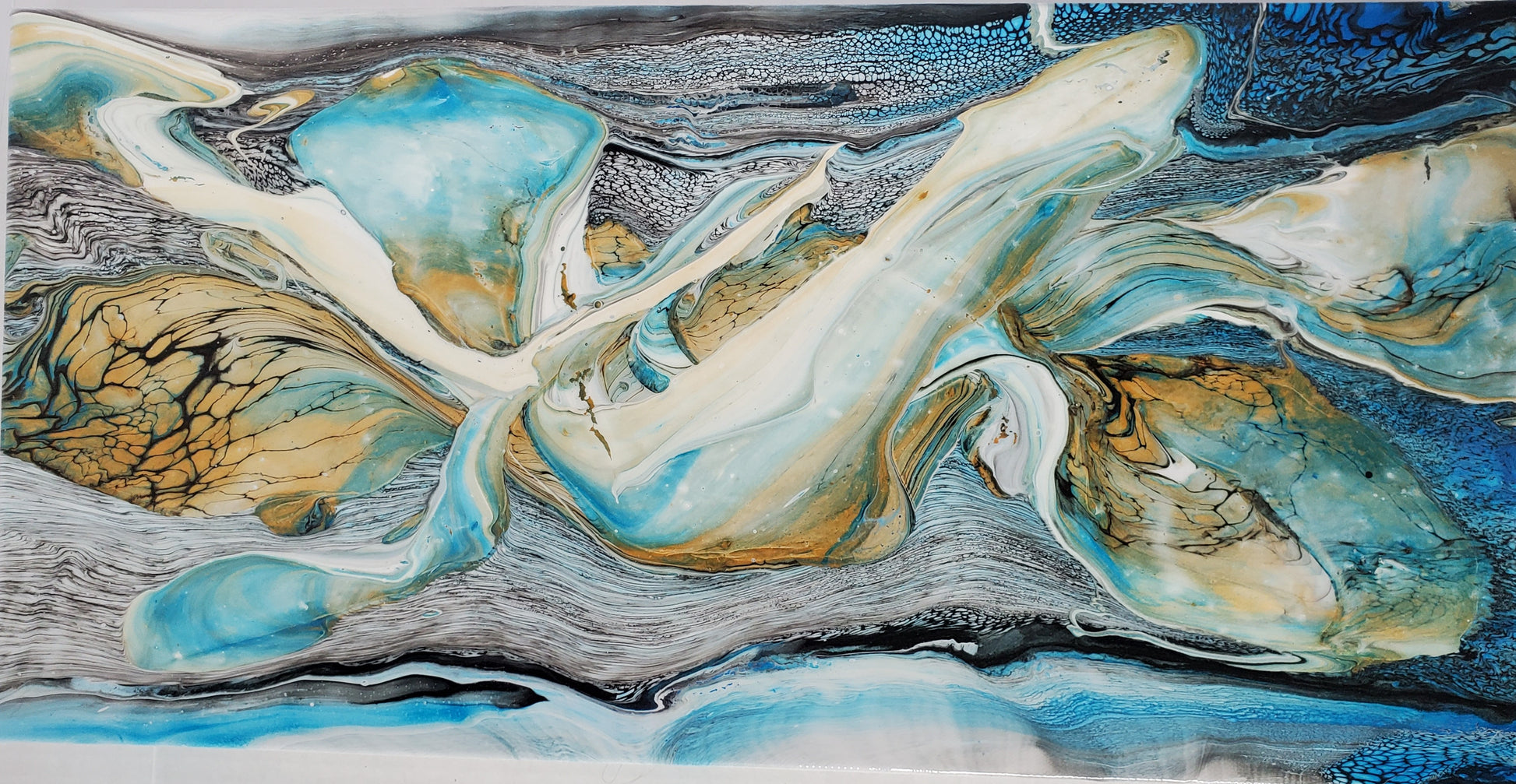 Our paintings are unique original art. They are created using a variety of fluid art techniques. We tend to use pigments in our work. Because the pigments give the paintings a lot of depth and movement that you can’t see in a photograph, we believe our work shows better in person than over the internet.