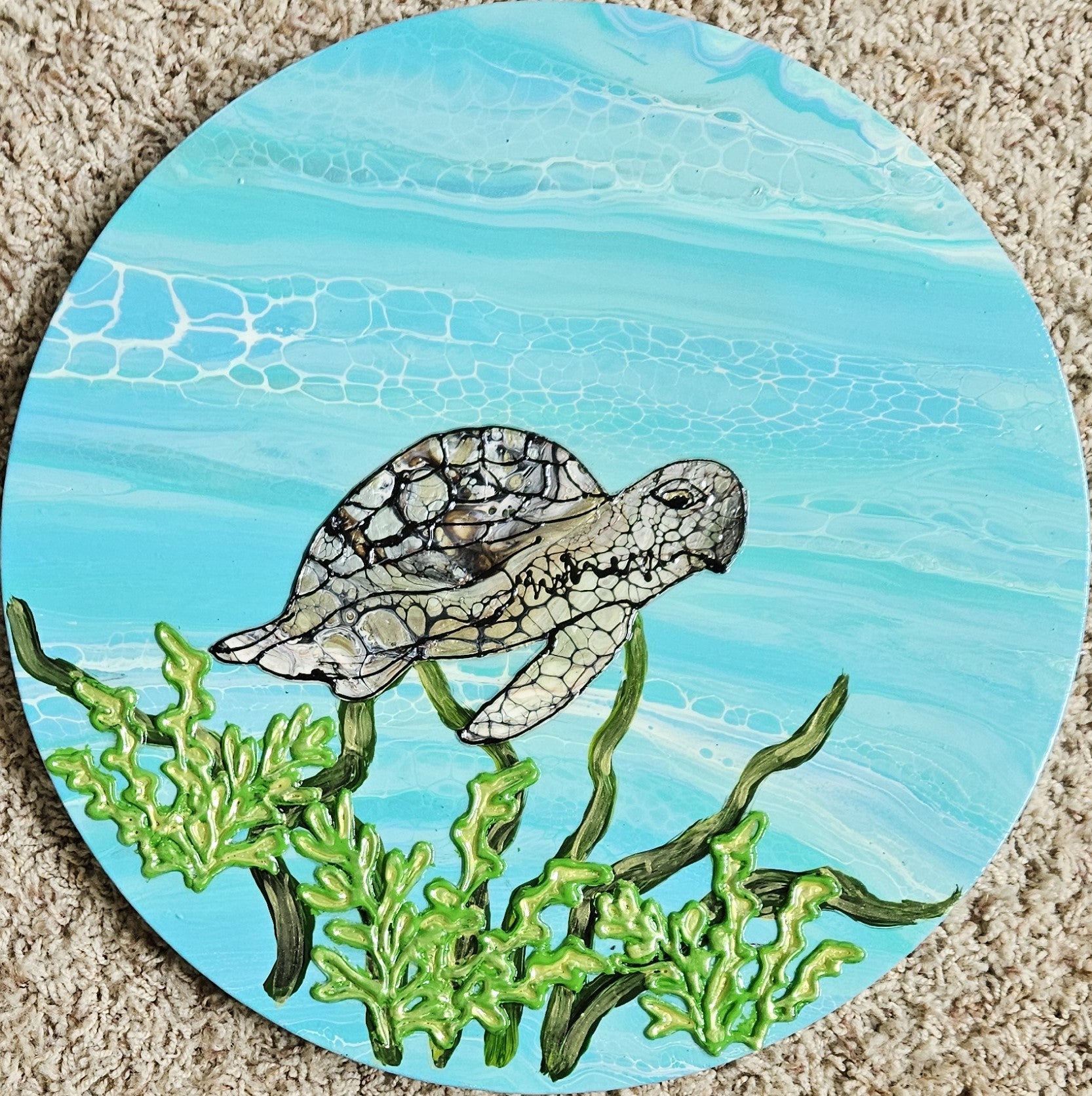 Our paintings are unique original art. They are created using a variety of fluid art techniques. We tend to use pigments in our work. Because the pigments give the paintings a lot of depth and movement that you can’t see in a photograph, we believe our work shows better in person than over the internet.