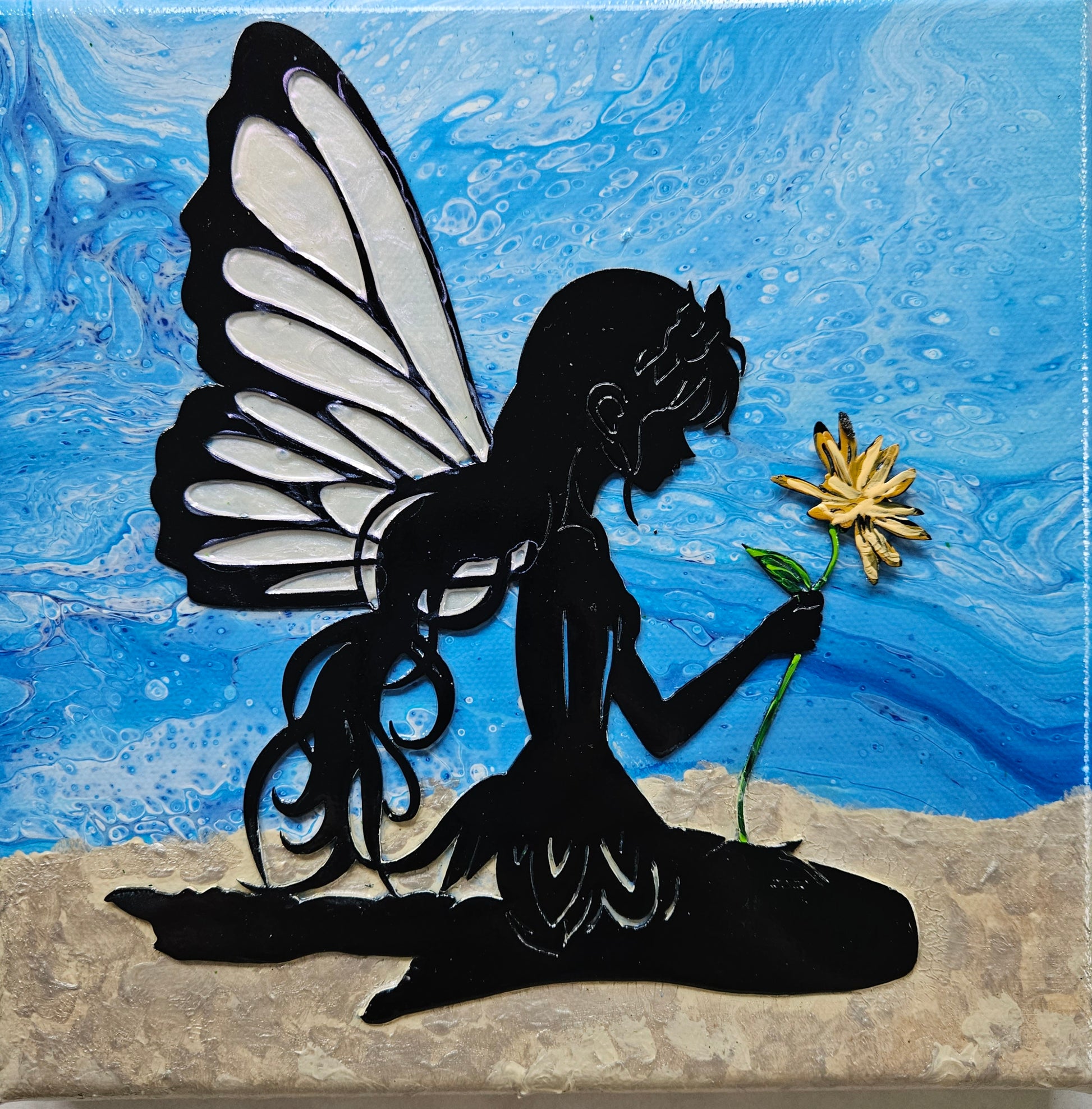 Our paintings are unique original art. They are created using a variety of fluid art techniques. We tend to use pigments in our work. Because the pigments give the paintings a lot of depth and movement that you can’t see in a photograph, we believe our work shows better in person than over the internet.