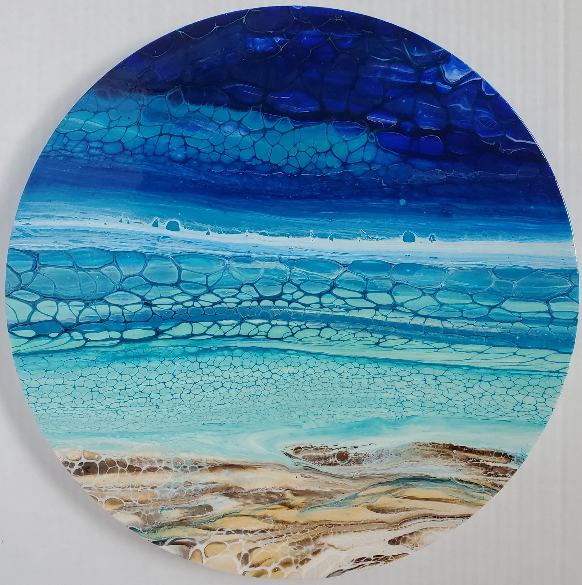 Our paintings are unique original art. They are created using a variety of fluid art techniques. We tend to use pigments in our work. Because the pigments give the paintings a lot of depth and movement that you can’t see in a photograph, we believe our work shows better in person than over the internet.