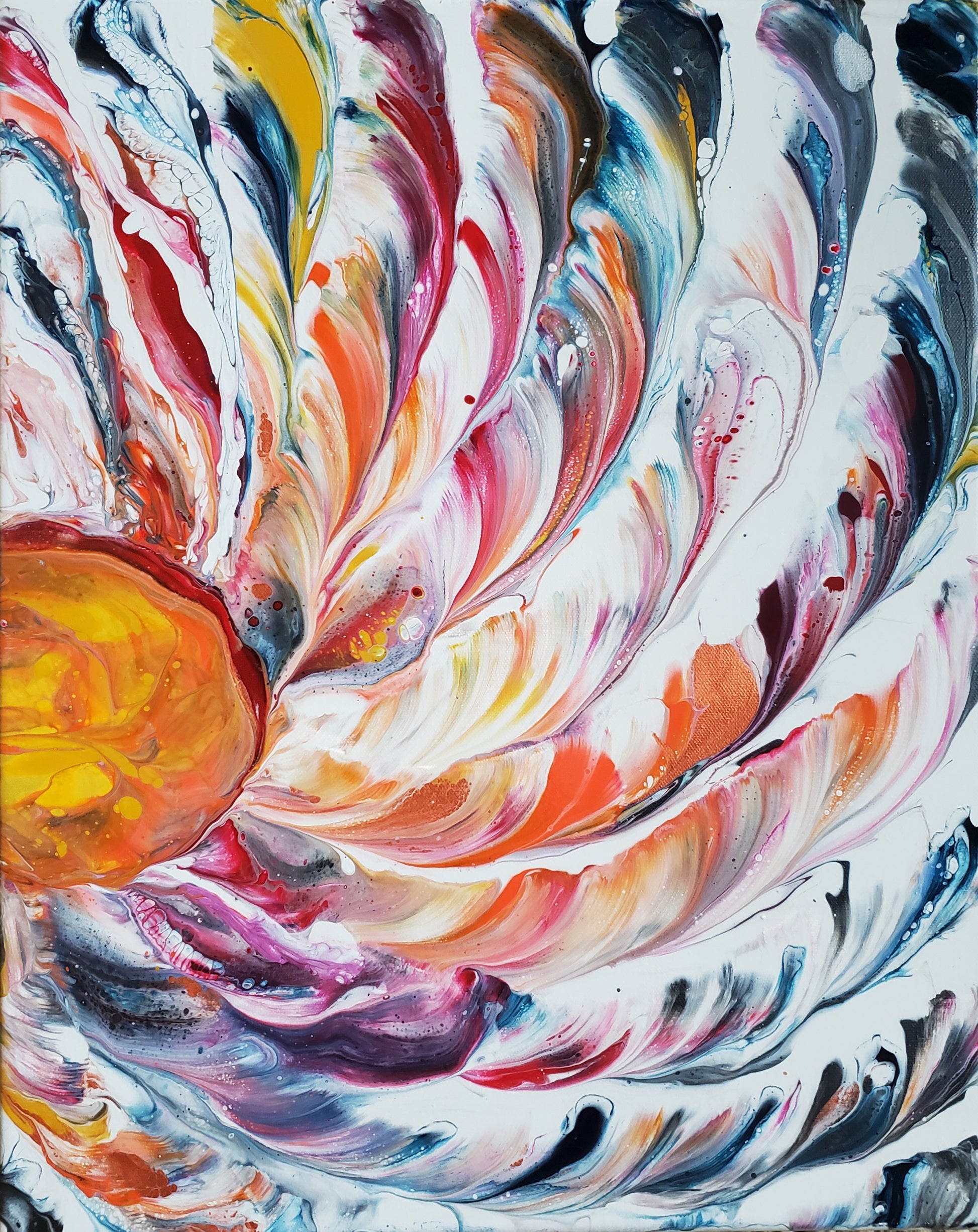 Our paintings are unique original art. They are created using a variety of fluid art techniques. We tend to use pigments in our work. Because the pigments give the paintings a lot of depth and movement that you can’t see in a photograph, we believe our work shows better in person than over the internet.