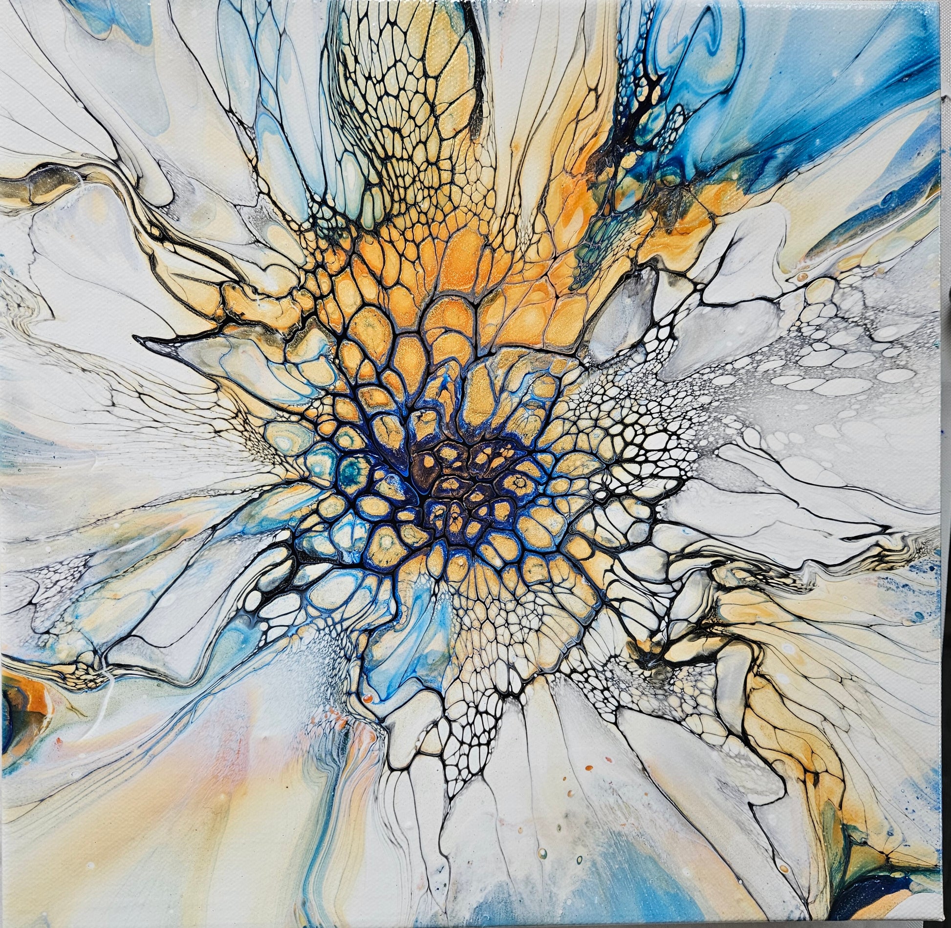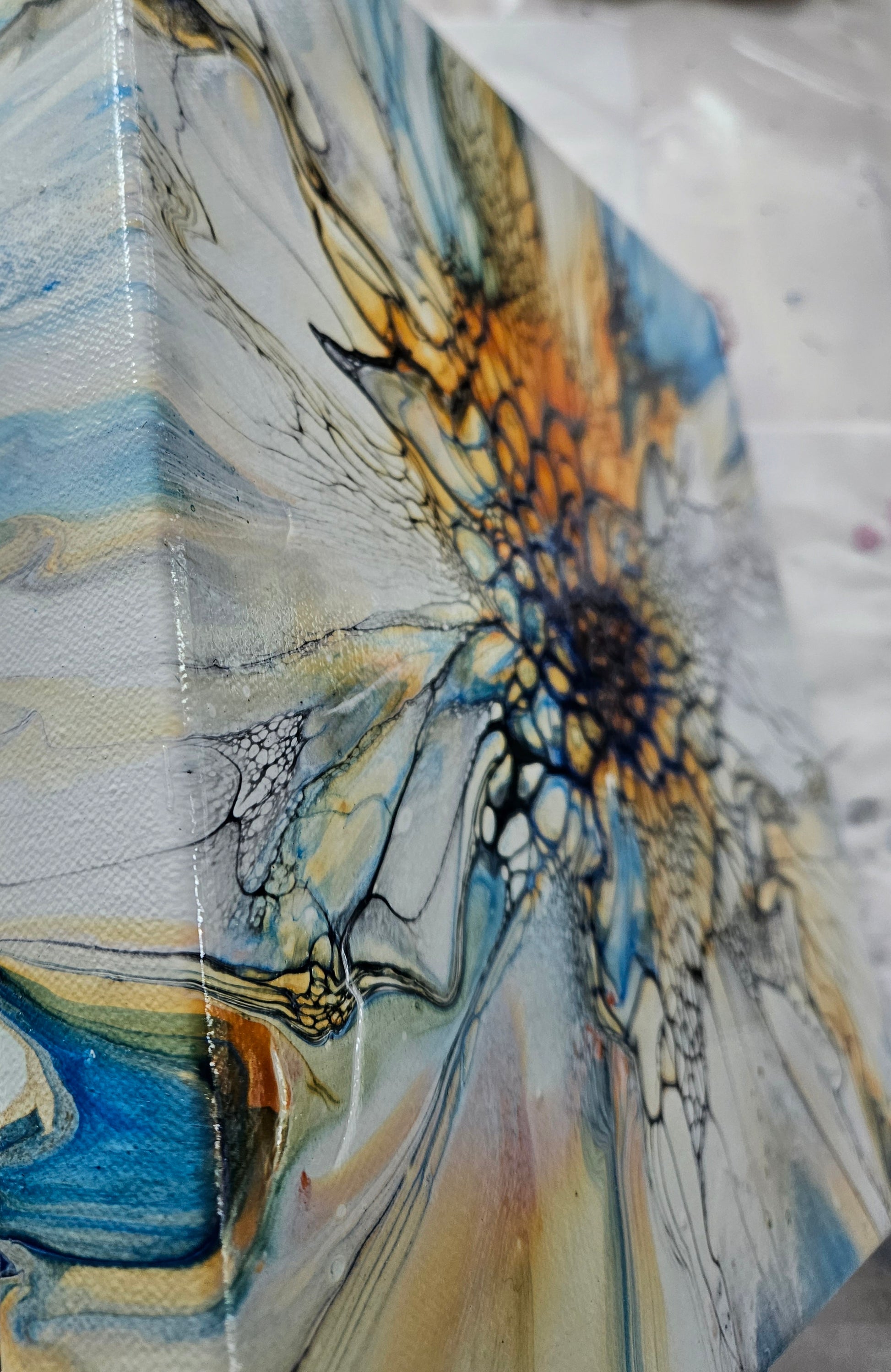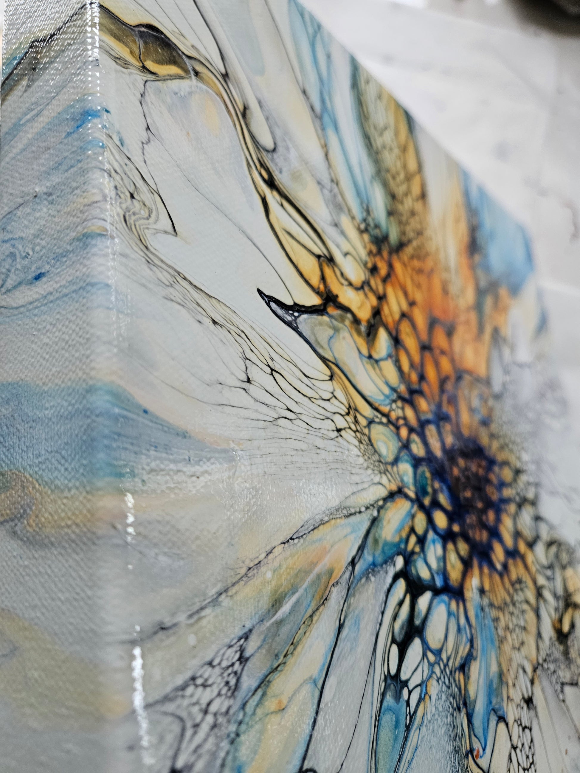 Our paintings are unique original art. They are created using a variety of fluid art techniques. We tend to use pigments in our work. Because the pigments give the paintings a lot of depth and movement that you can’t see in a photograph, we believe our work shows better in person than over the internet.