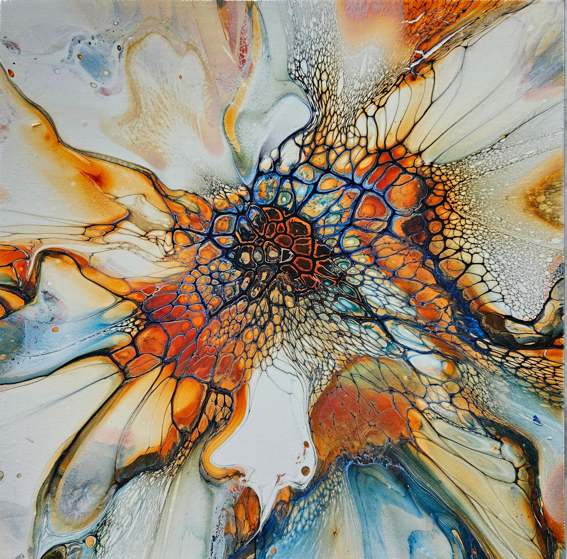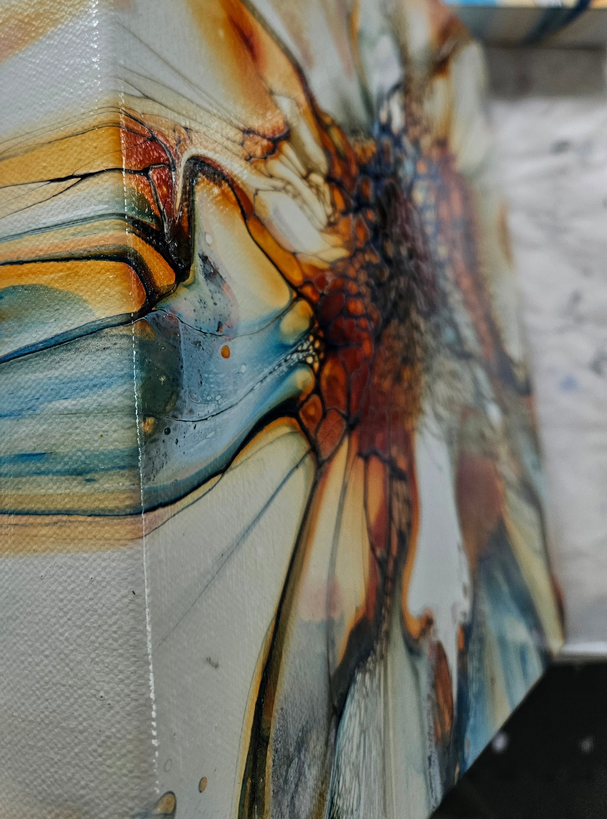 Our paintings are unique original art. They are created using a variety of fluid art techniques. We tend to use pigments in our work. Because the pigments give the paintings a lot of depth and movement that you can’t see in a photograph, we believe our work shows better in person than over the internet.