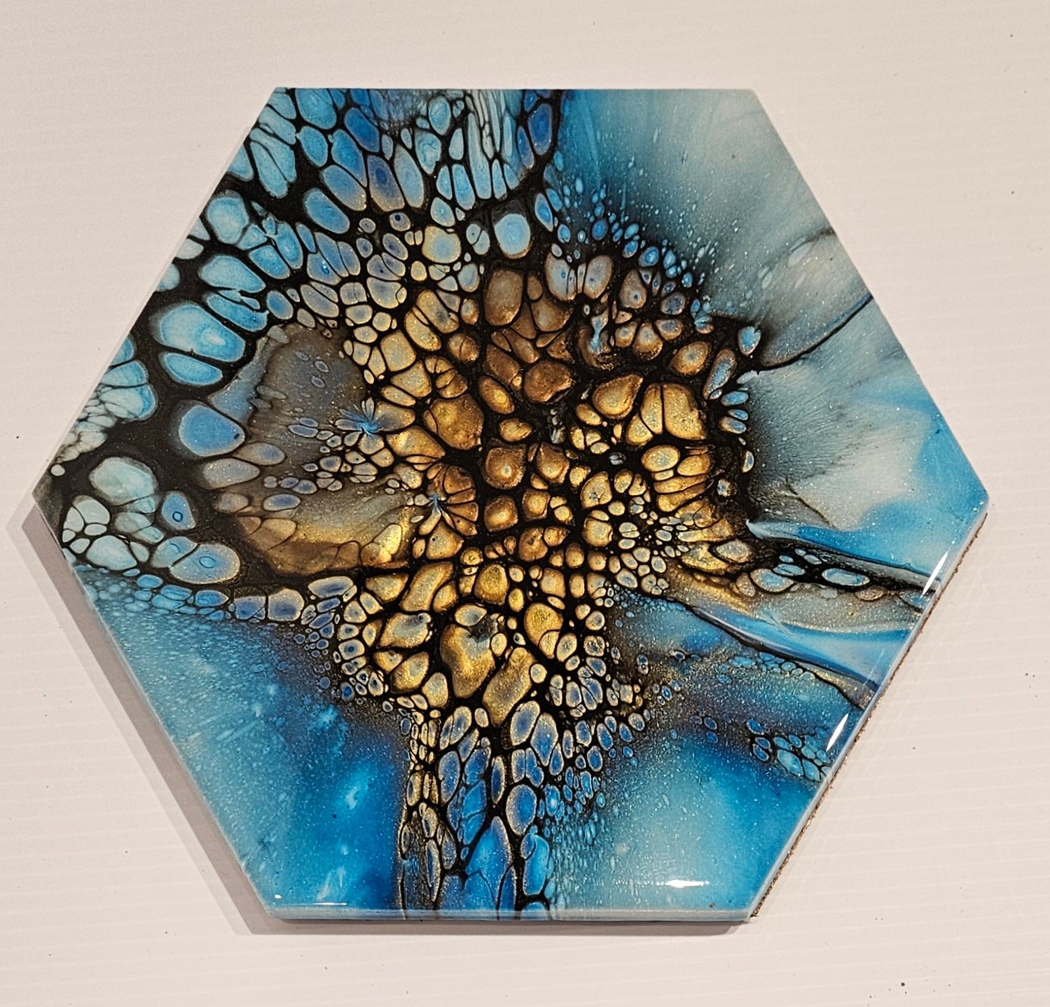 Trivet - Large Hexagon - Blue/Gold 1