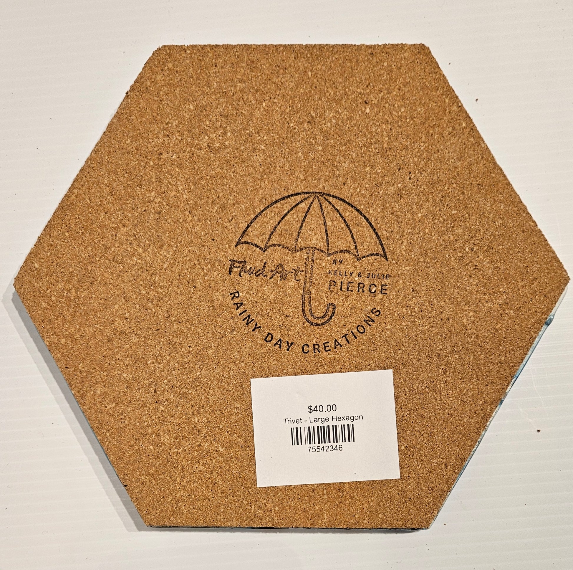 To make a trivet, we paint on ceramic tile and protect the paint with a high heat, art grade resin. We attach cork to the bottom of the trivet to protect your countertop from the tile.