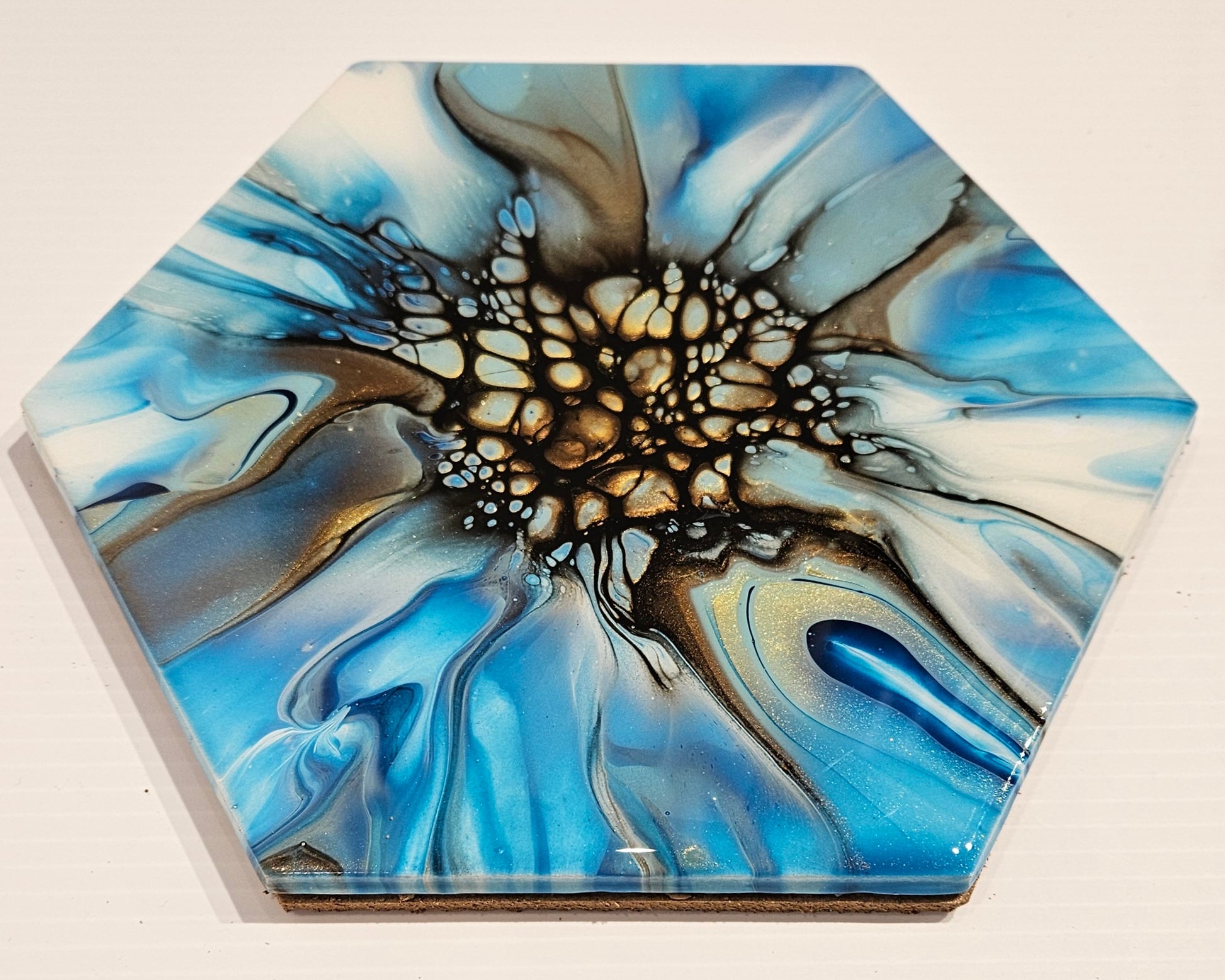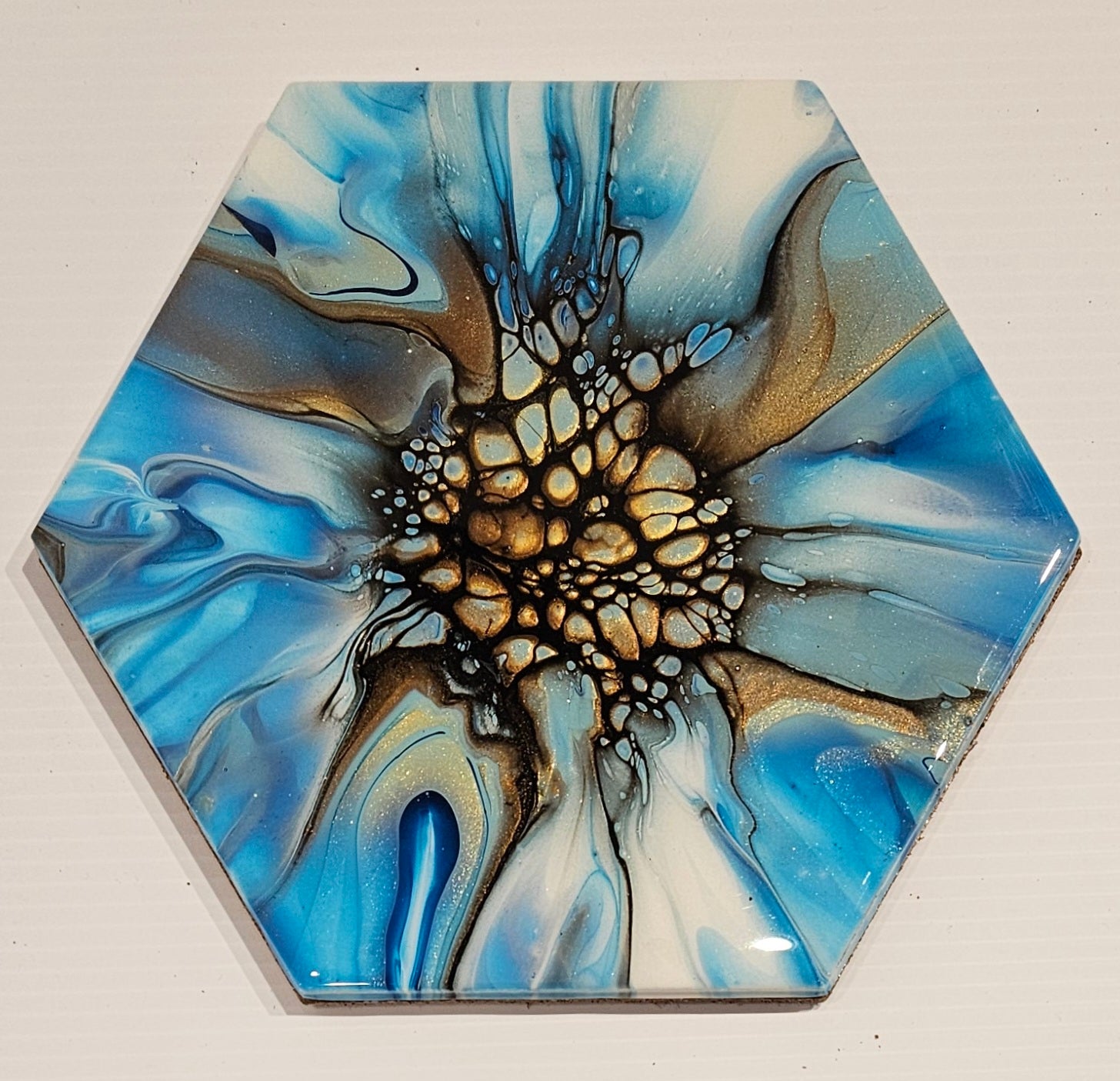 Trivet - Lg Medium Hexagon - Blue/Gold 1