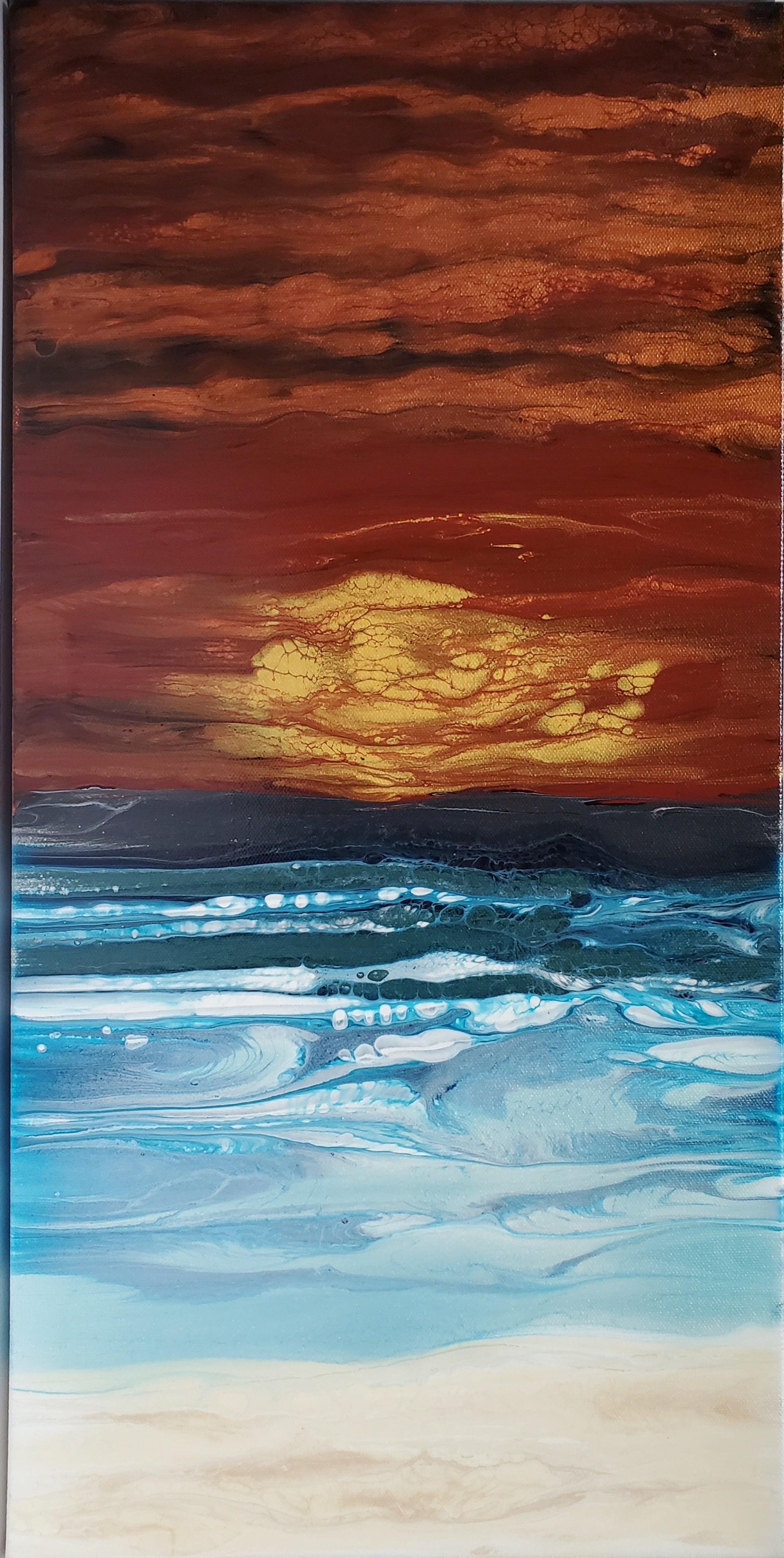 Our paintings are unique original art. They are created using a variety of fluid art techniques. We tend to use pigments in our work. Because the pigments give the paintings a lot of depth and movement that you can’t see in a photograph, we believe our work shows better in person than over the internet.