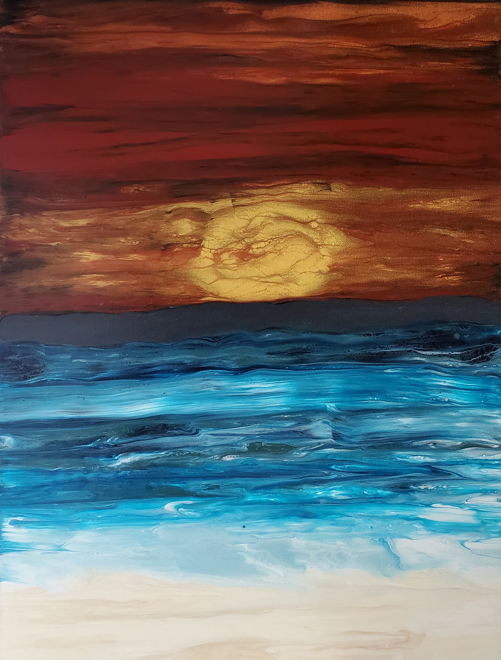 Our paintings are unique original art. They are created using a variety of fluid art techniques. We tend to use pigments in our work. Because the pigments give the paintings a lot of depth and movement that you can’t see in a photograph, we believe our work shows better in person than over the internet.