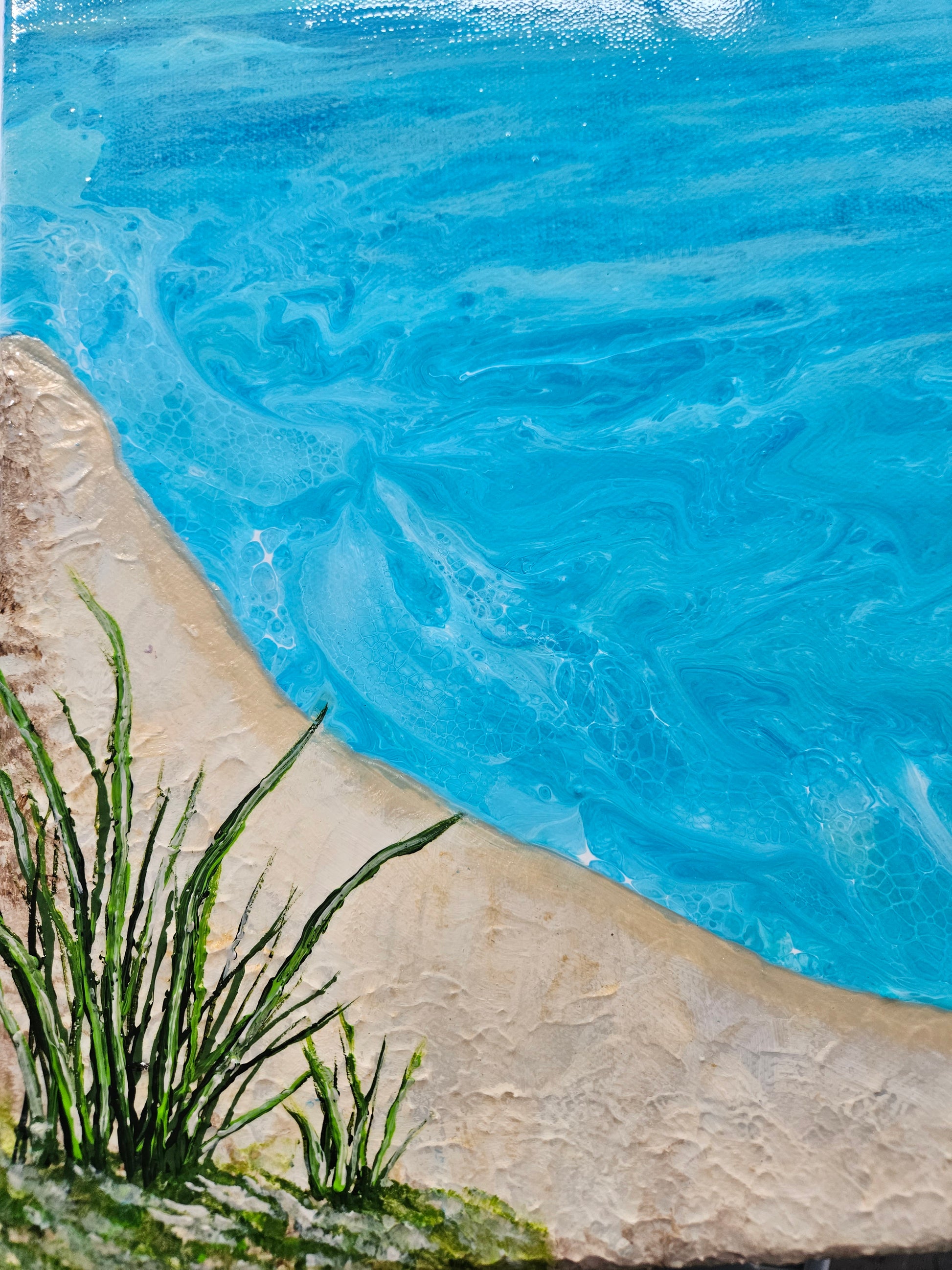 Our paintings are unique original art. They are created using a variety of fluid art techniques. We tend to use pigments in our work. Because the pigments give the paintings a lot of depth and movement that you can’t see in a photograph, we believe our work shows better in person than over the internet.