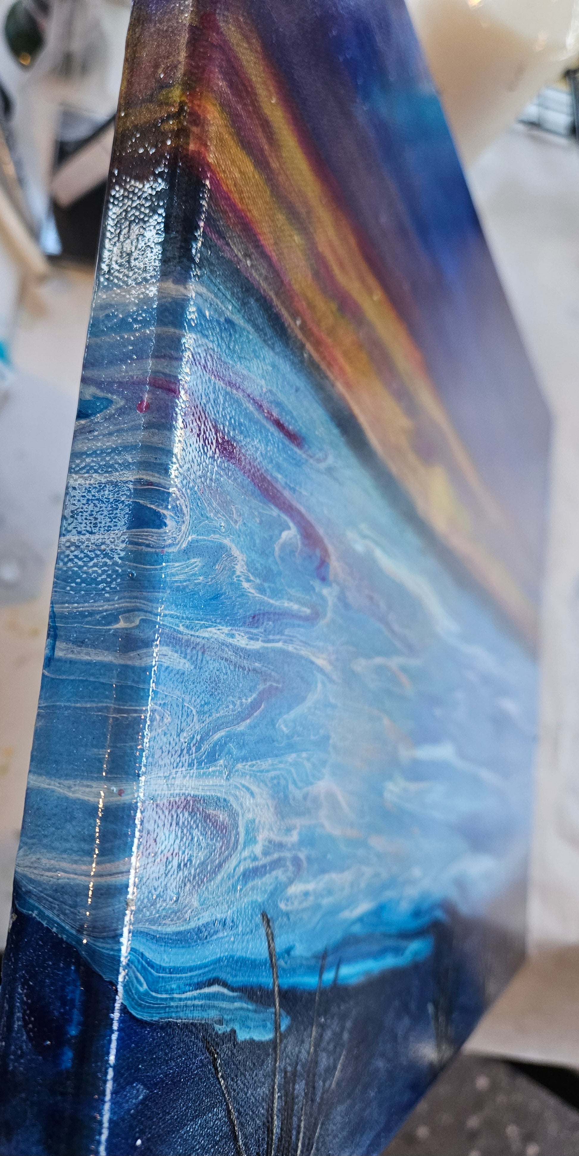 Our paintings are unique original art. They are created using a variety of fluid art techniques. We tend to use pigments in our work. Because the pigments give the paintings a lot of depth and movement that you can’t see in a photograph, we believe our work shows better in person than over the internet.