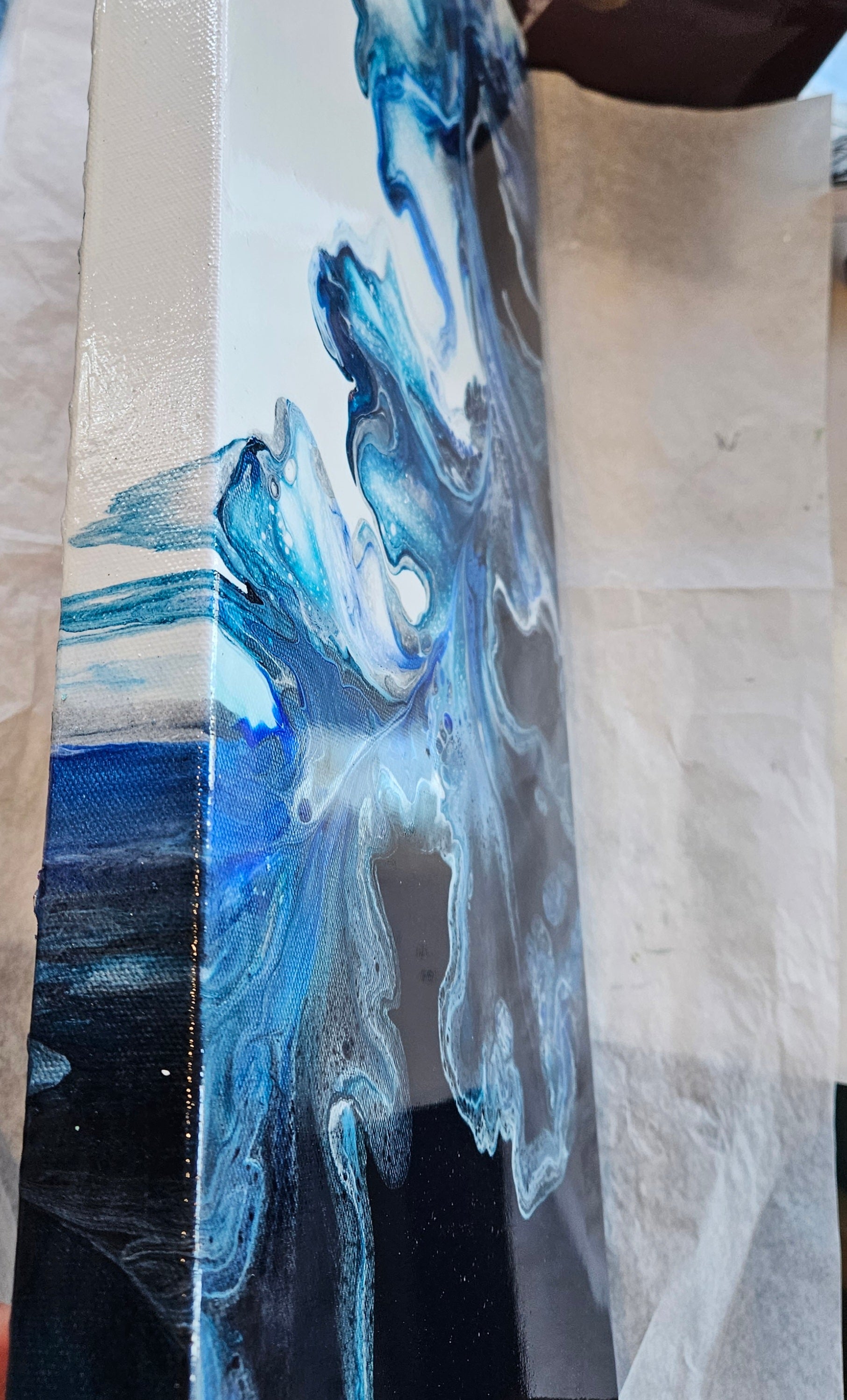 Our paintings are unique original art. They are created using a variety of fluid art techniques. We tend to use pigments in our work. Because the pigments give the paintings a lot of depth and movement that you can’t see in a photograph, we believe our work shows better in person than over the internet.