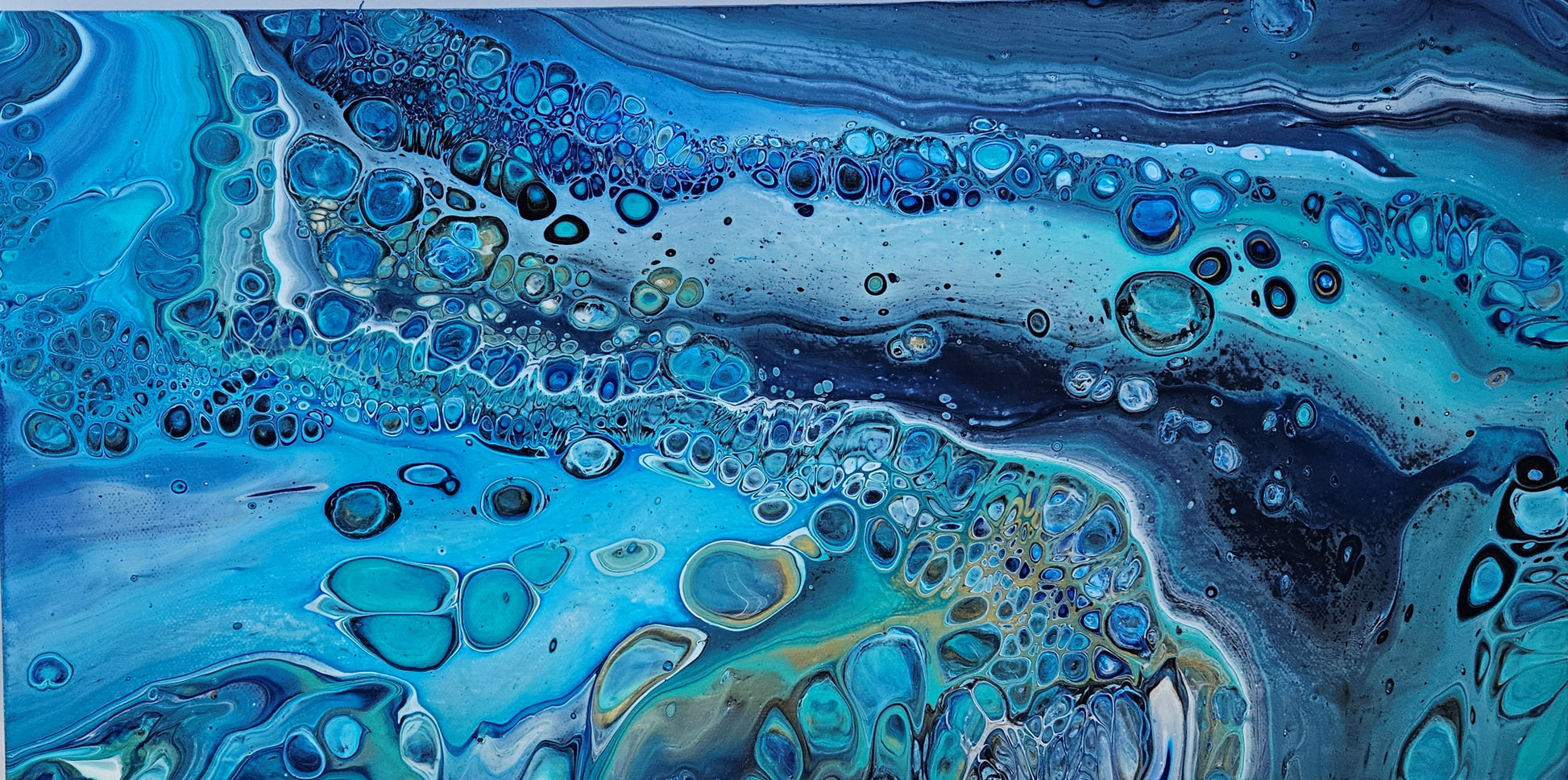 Our paintings are unique original art. They are created using a variety of fluid art techniques. We tend to use pigments in our work. Because the pigments give the paintings a lot of depth and movement that you can’t see in a photograph, we believe our work shows better in person than over the internet.
