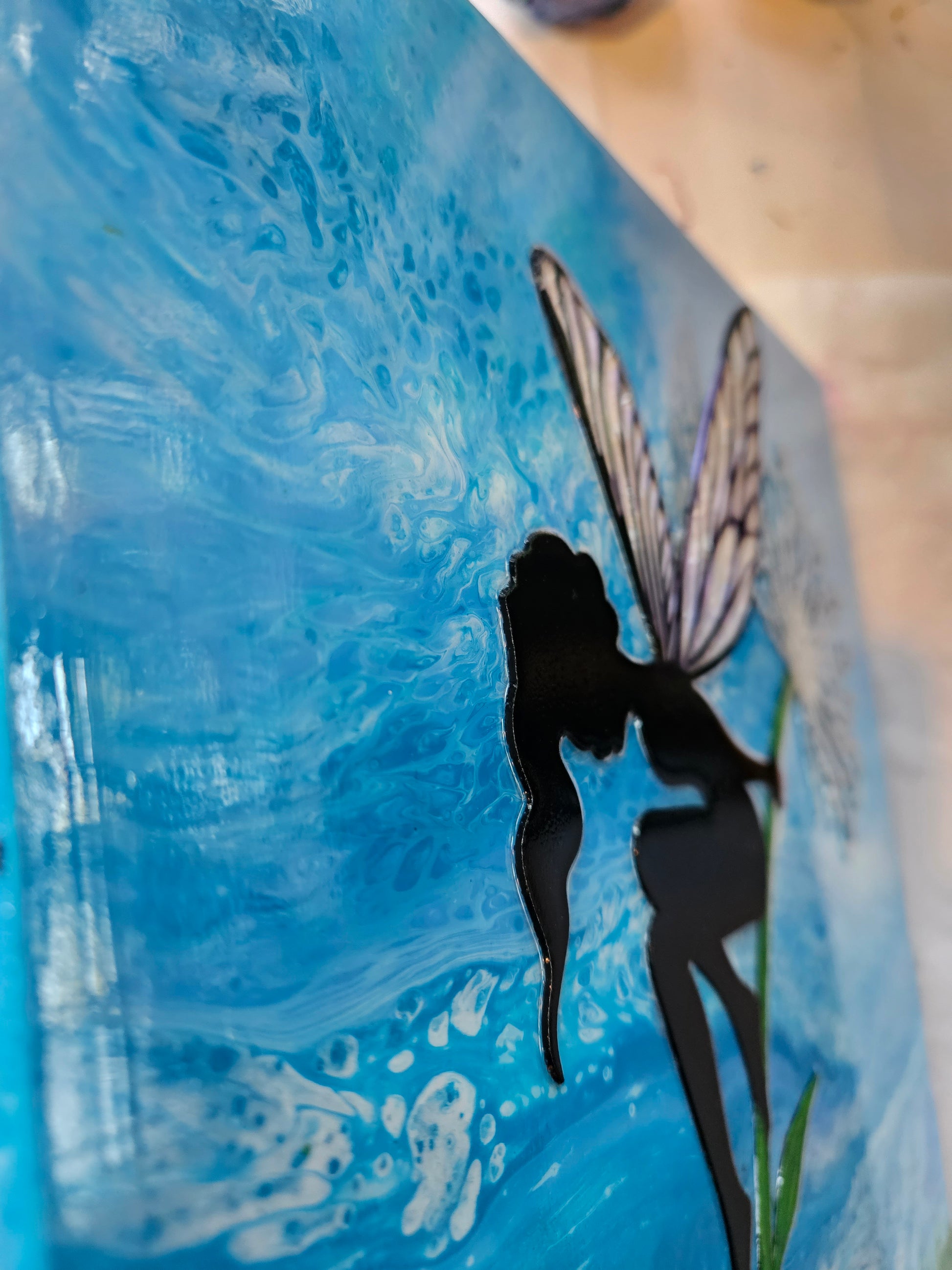Our paintings are unique original art. They are created using a variety of fluid art techniques. We tend to use pigments in our work. Because the pigments give the paintings a lot of depth and movement that you can’t see in a photograph, we believe our work shows better in person than over the internet.