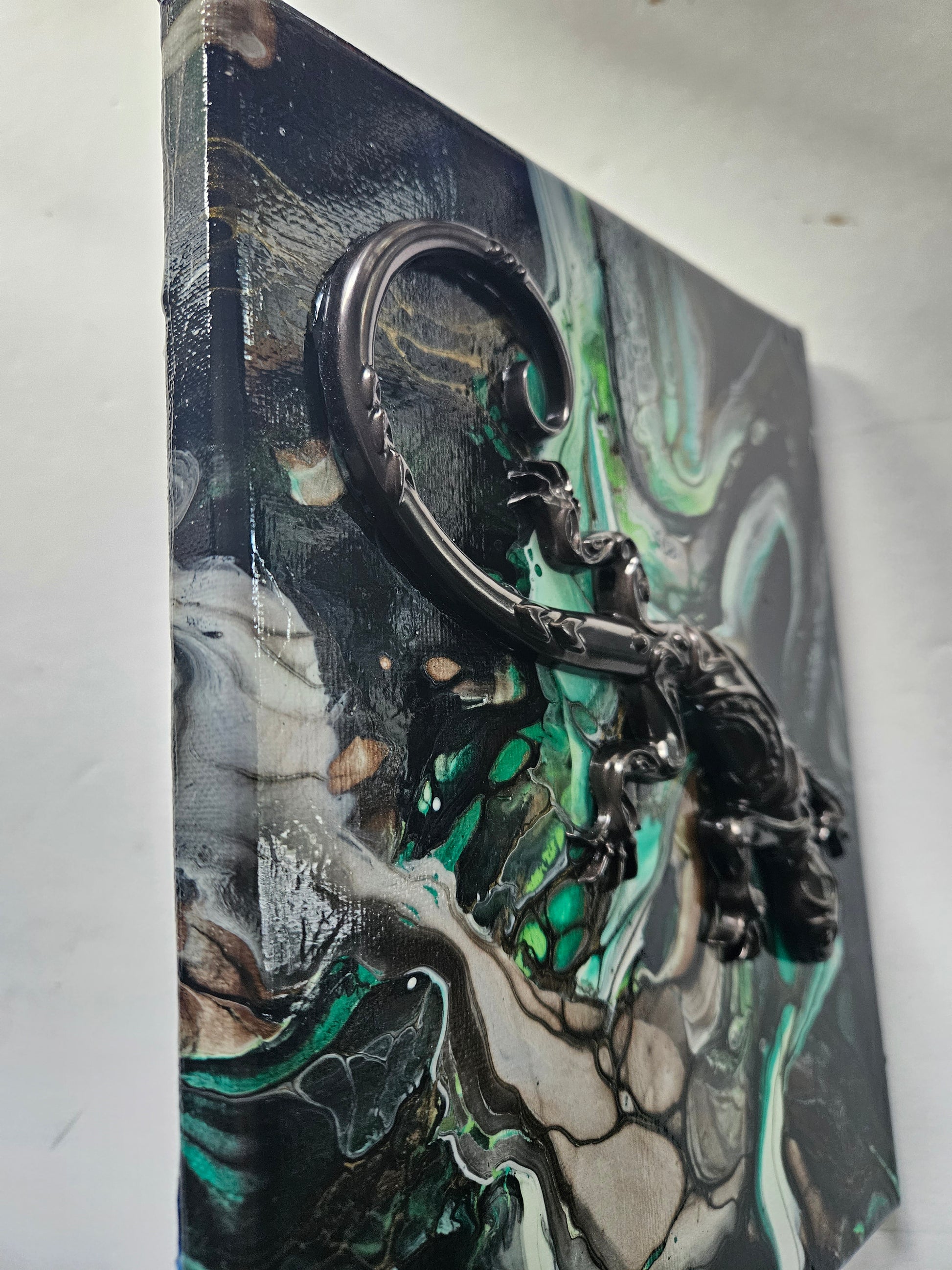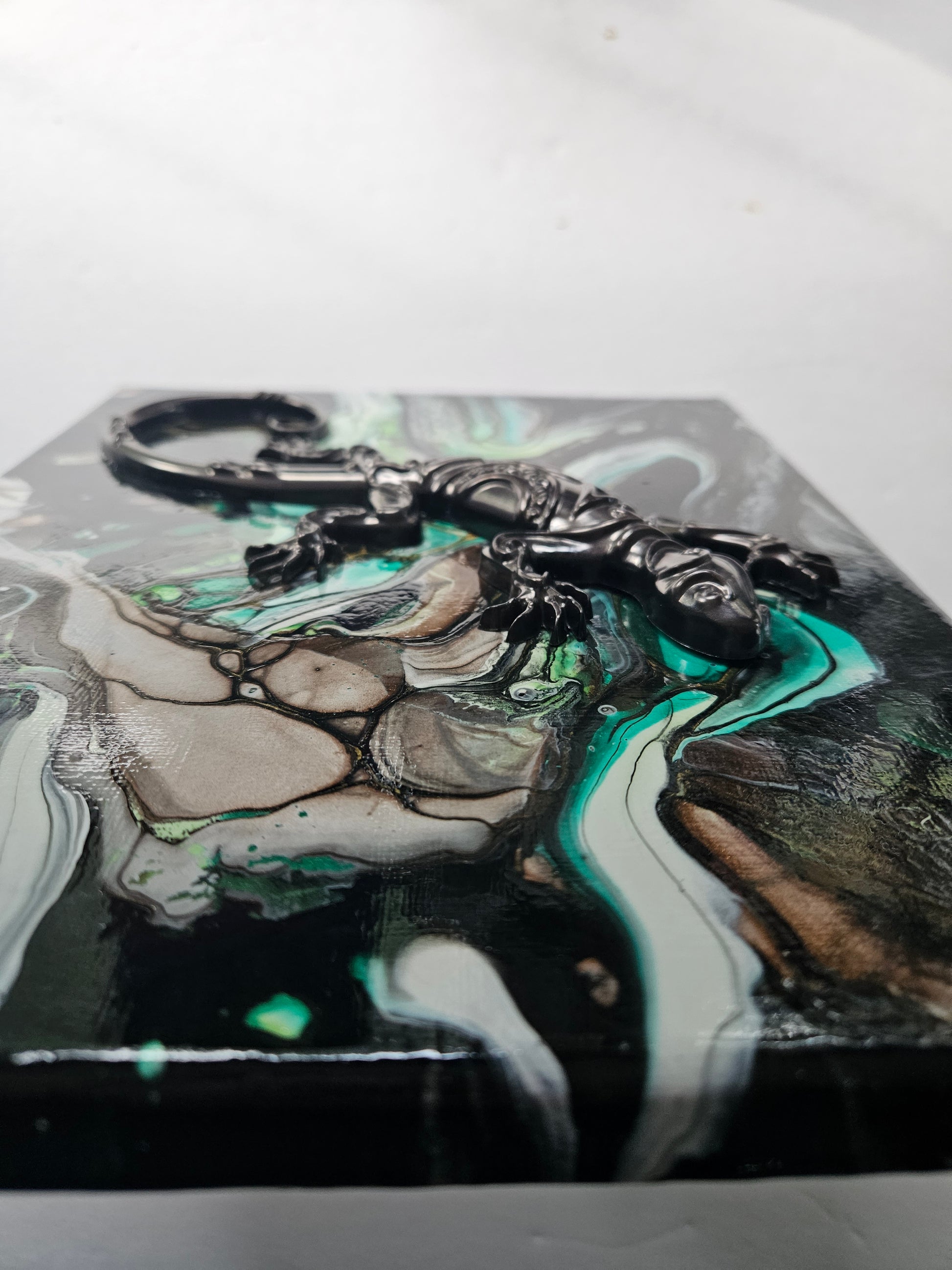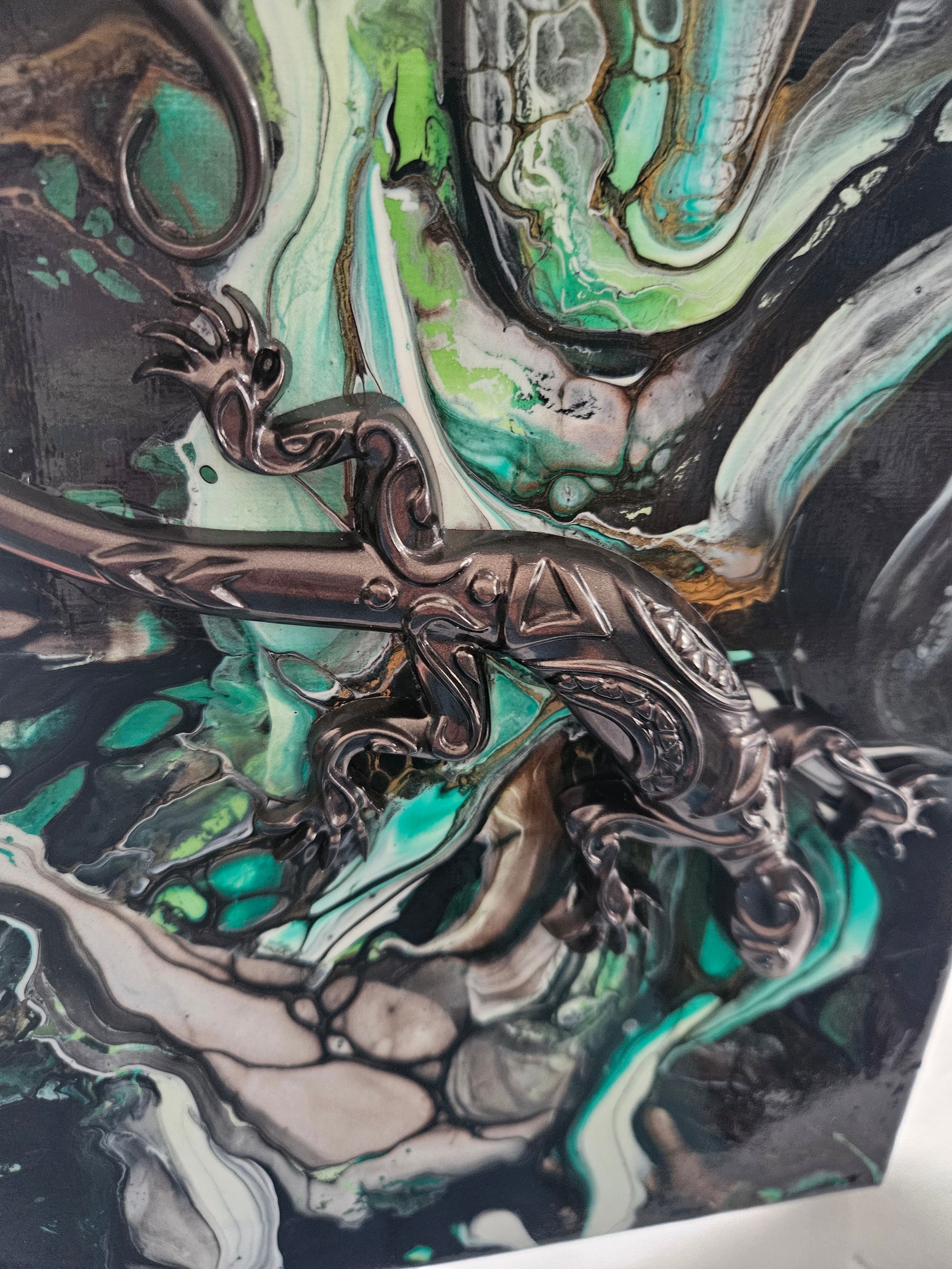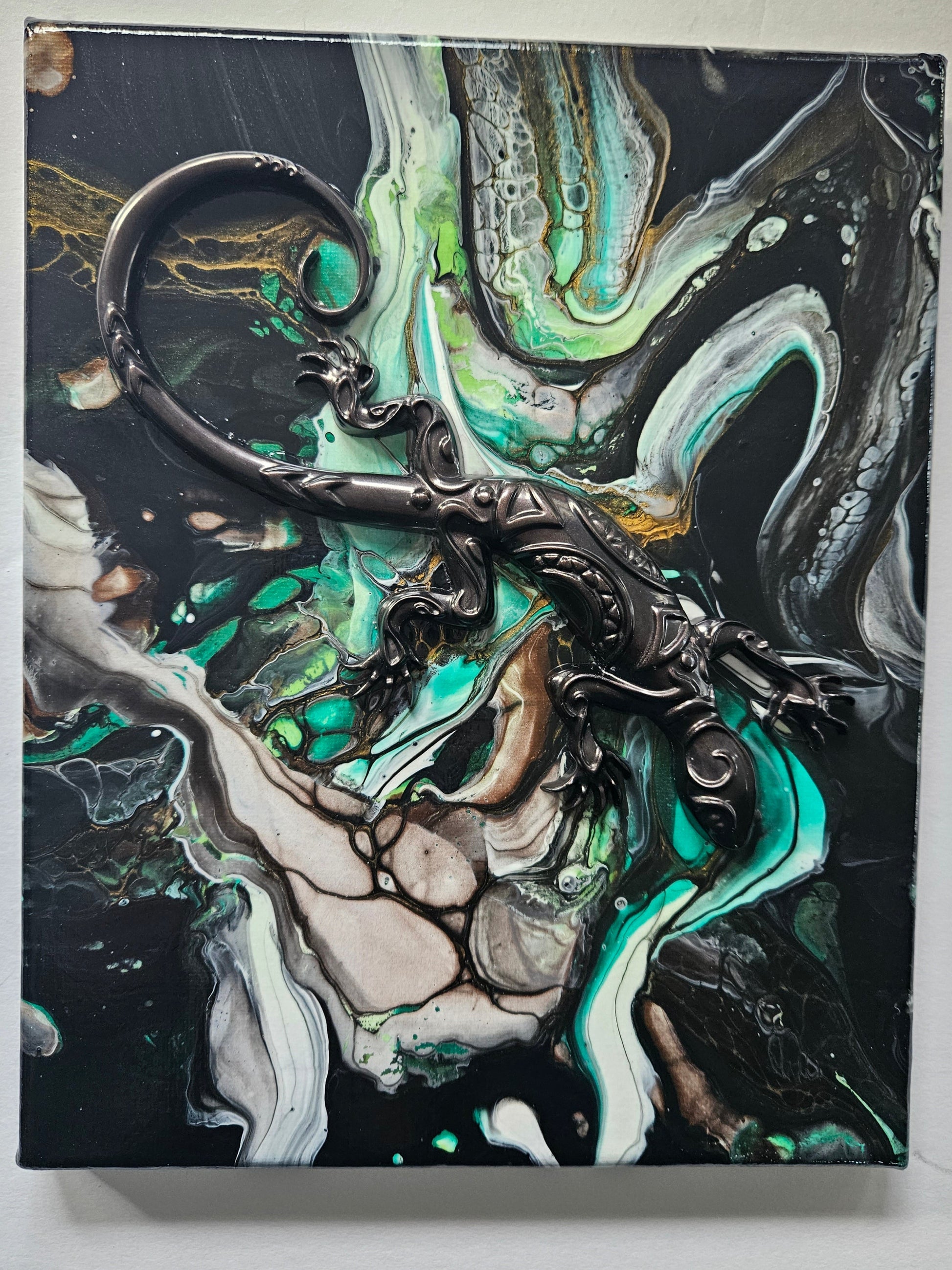 Our paintings are unique original art. They are created using a variety of fluid art techniques. We tend to use pigments in our work. Because the pigments give the paintings a lot of depth and movement that you can’t see in a photograph, we believe our work shows better in person than over the internet.