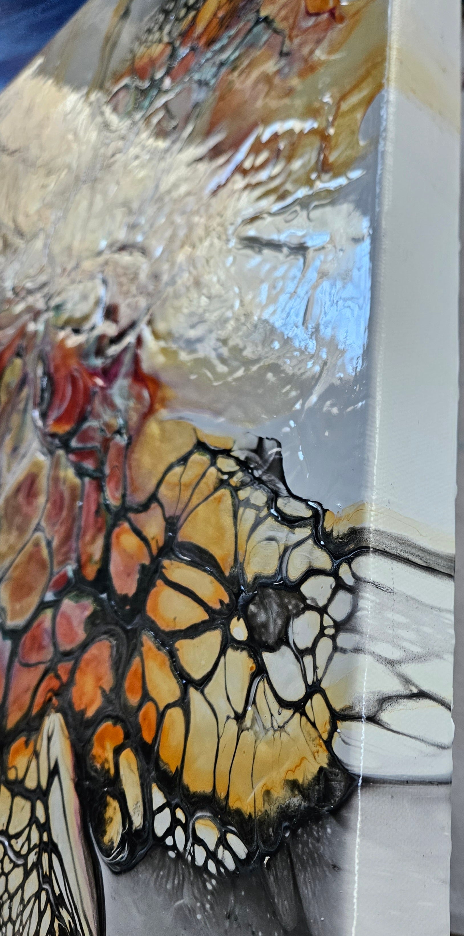 Our paintings are unique original art. They are created using a variety of fluid art techniques. We tend to use pigments in our work. Because the pigments give the paintings a lot of depth and movement that you can’t see in a photograph, we believe our work shows better in person than over the internet.