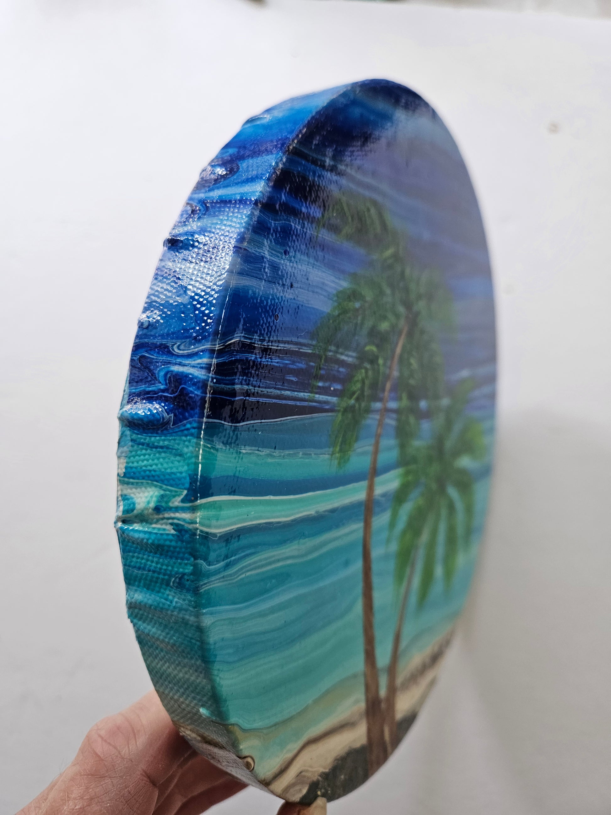 Our paintings are unique original art. They are created using a variety of fluid art techniques. We tend to use pigments in our work. Because the pigments give the paintings a lot of depth and movement that you can’t see in a photograph, we believe our work shows better in person than over the internet.