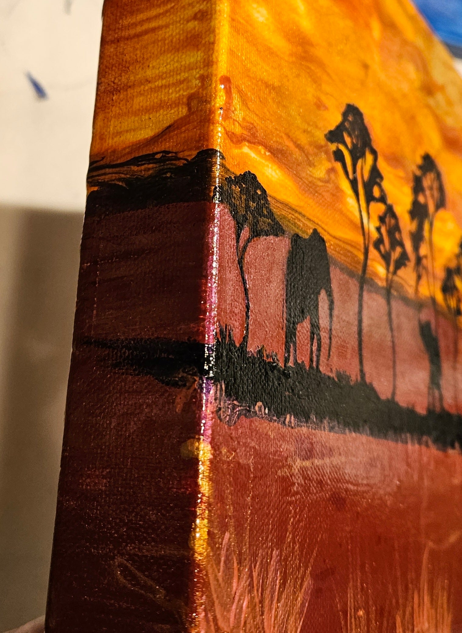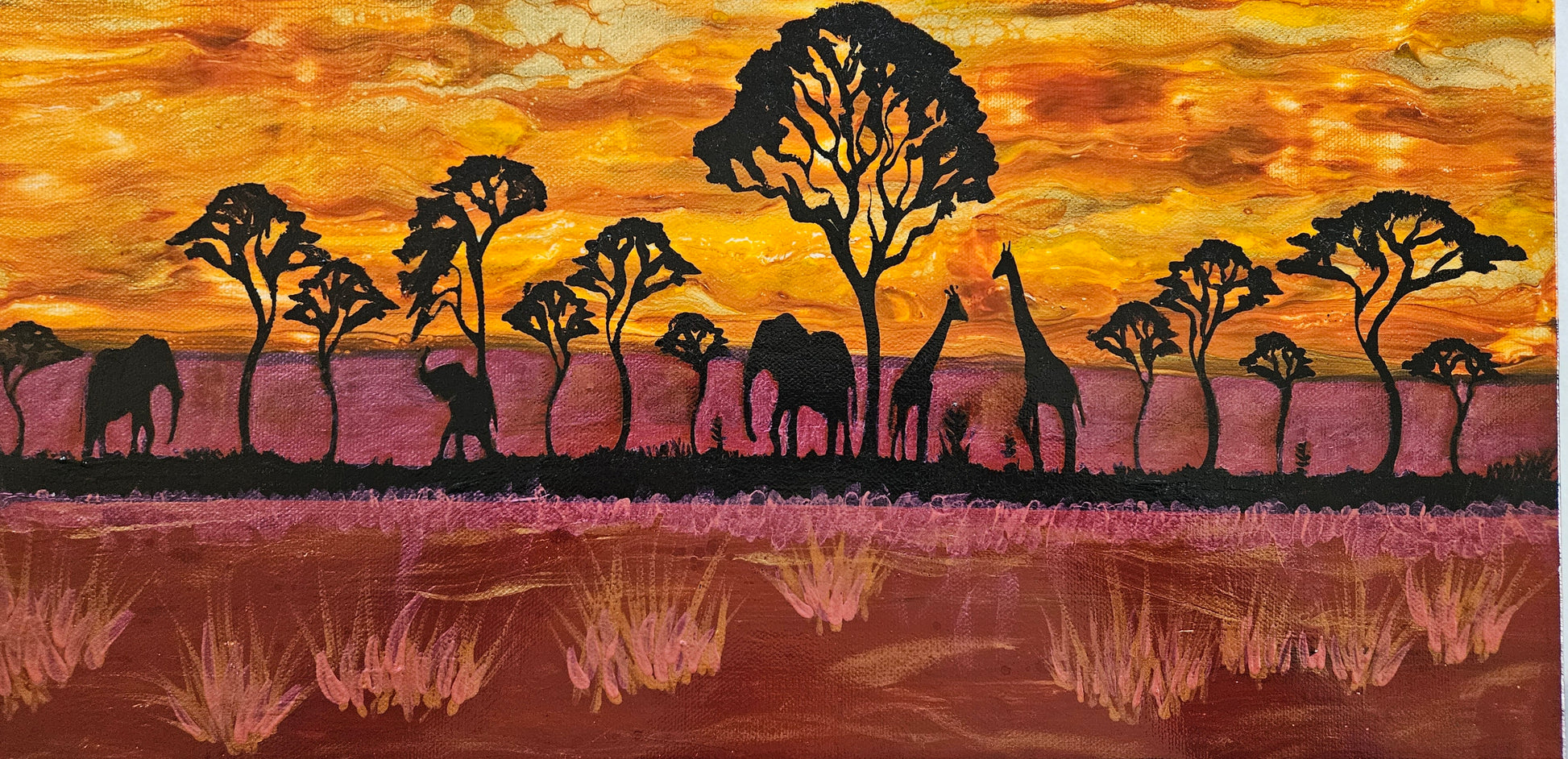 Our paintings are unique original art. They are created using a variety of fluid art techniques. We tend to use pigments in our work. Because the pigments give the paintings a lot of depth and movement that you can’t see in a photograph, we believe our work shows better in person than over the internet.