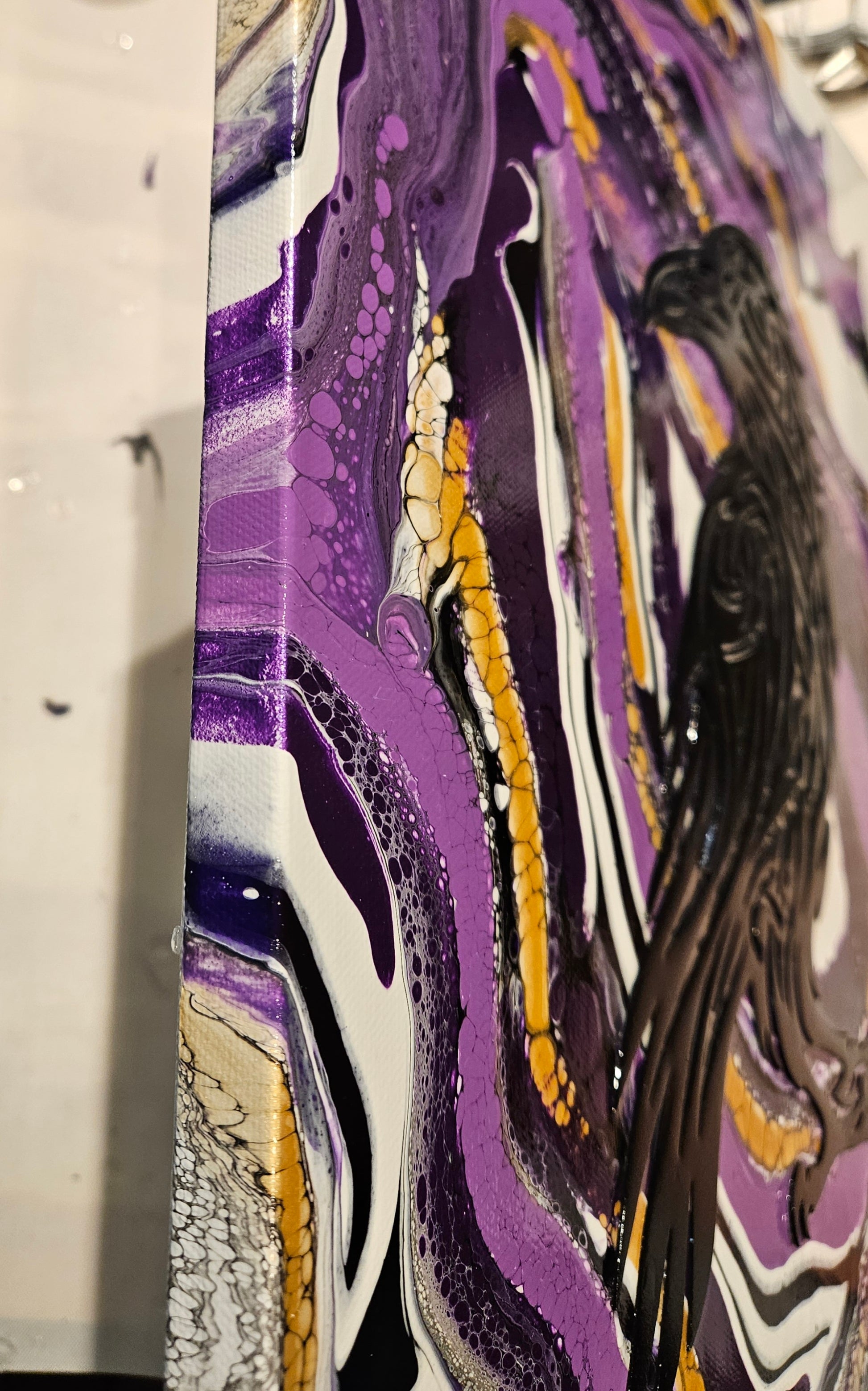 Our paintings are unique original art. They are created using a variety of fluid art techniques. We tend to use pigments in our work. Because the pigments give the paintings a lot of depth and movement that you can’t see in a photograph, we believe our work shows better in person than over the internet.