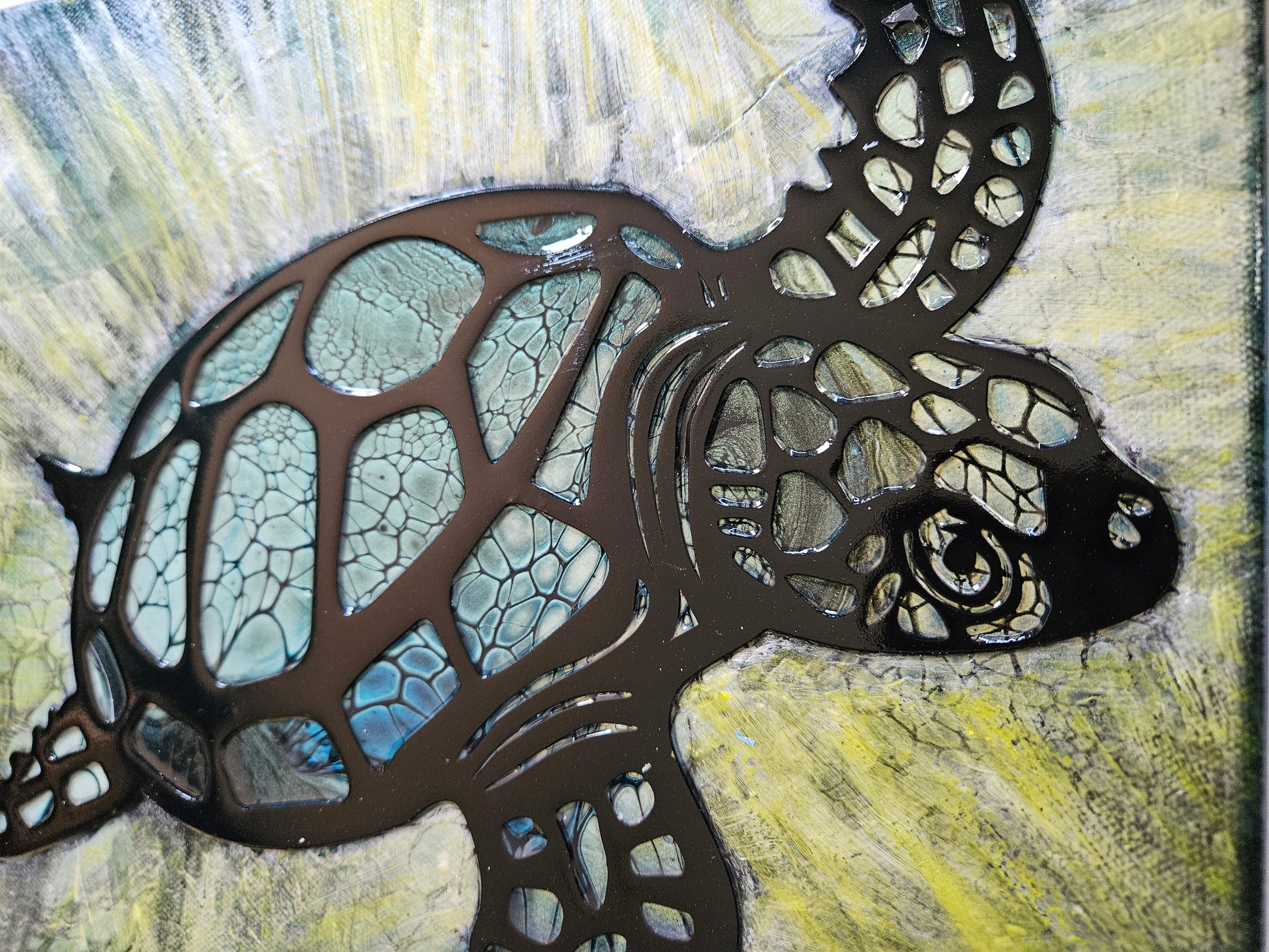 Our paintings are unique original art. They are created using a variety of fluid art techniques. We tend to use pigments in our work. Because the pigments give the paintings a lot of depth and movement that you can’t see in a photograph, we believe our work shows better in person than over the internet.